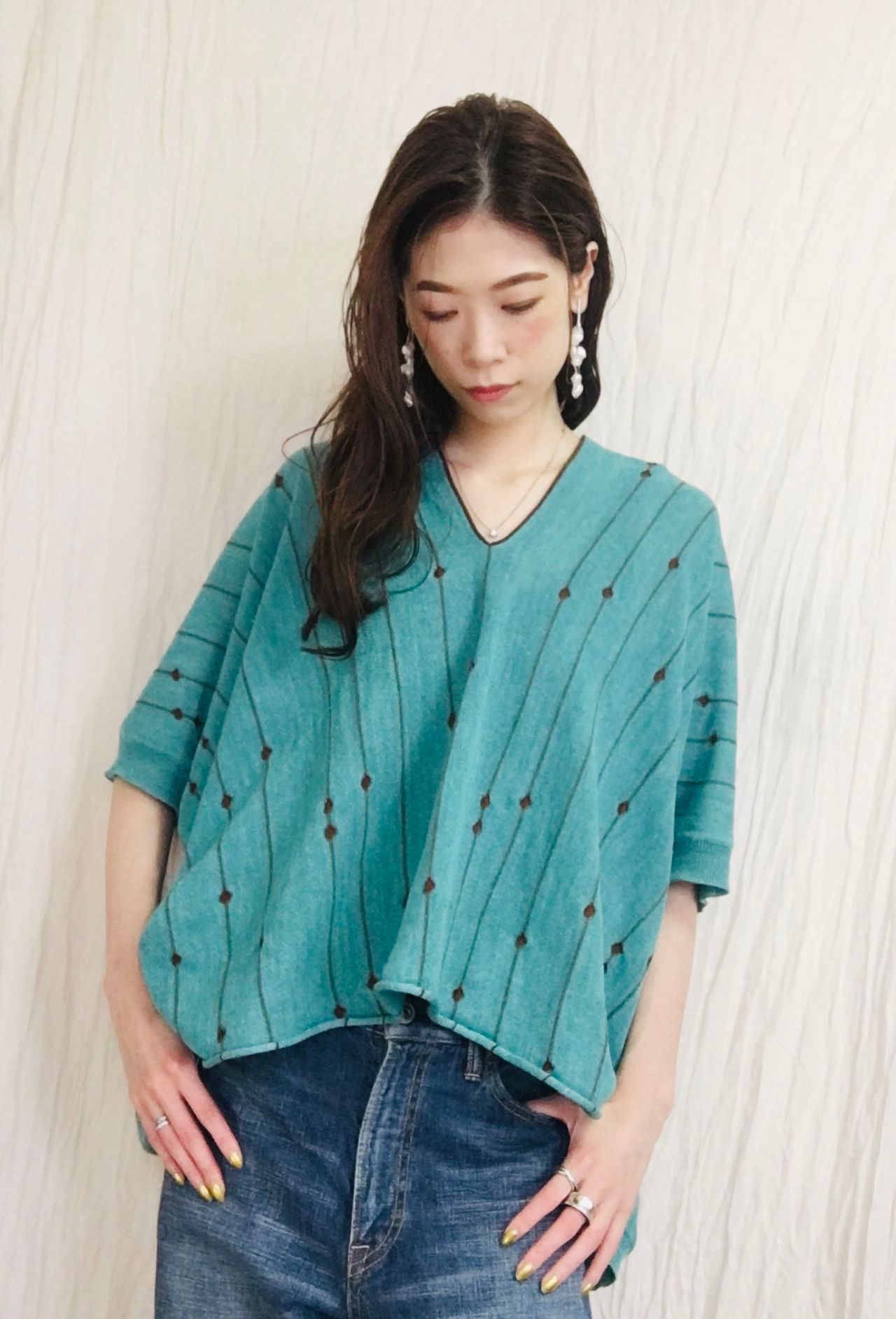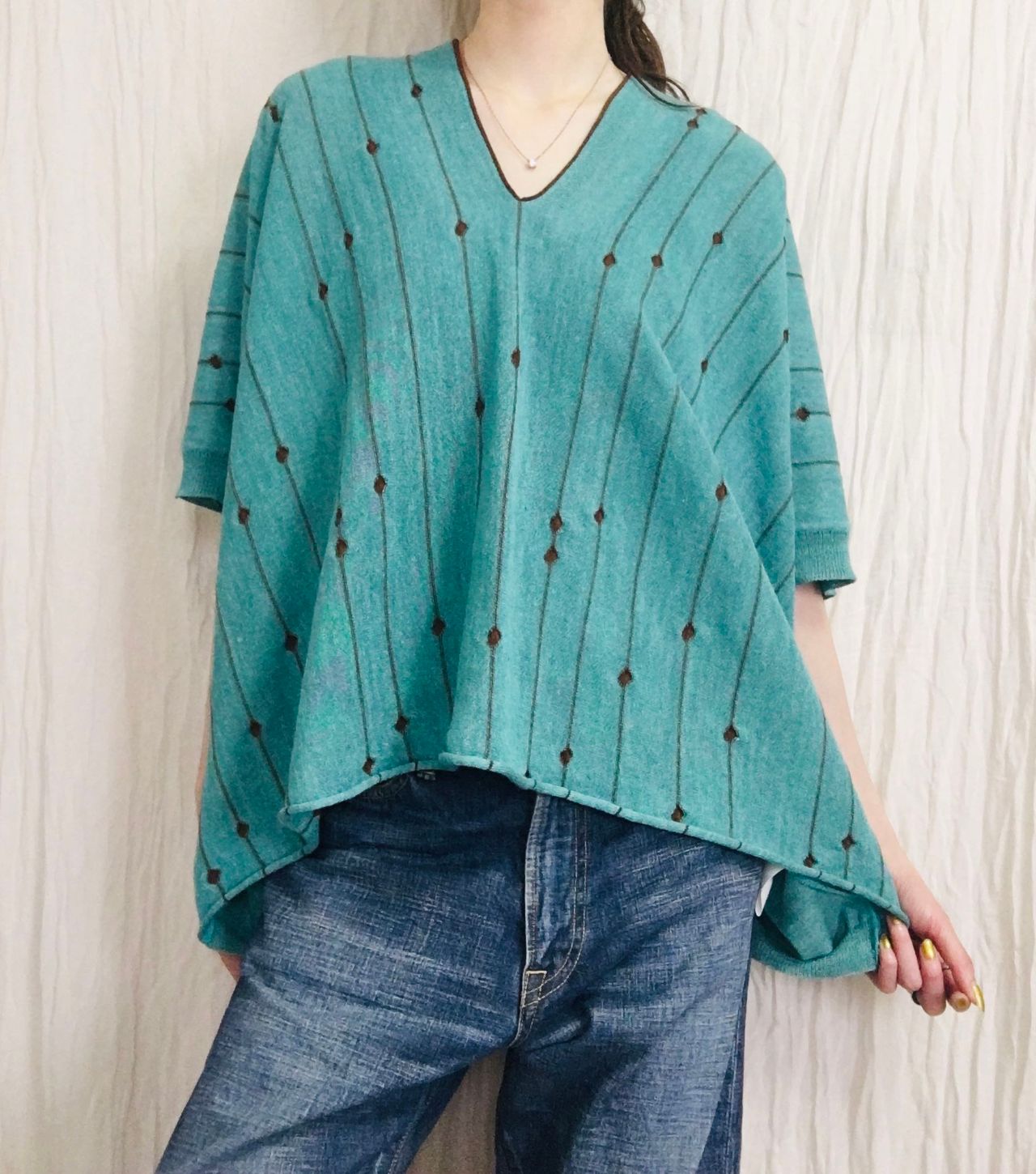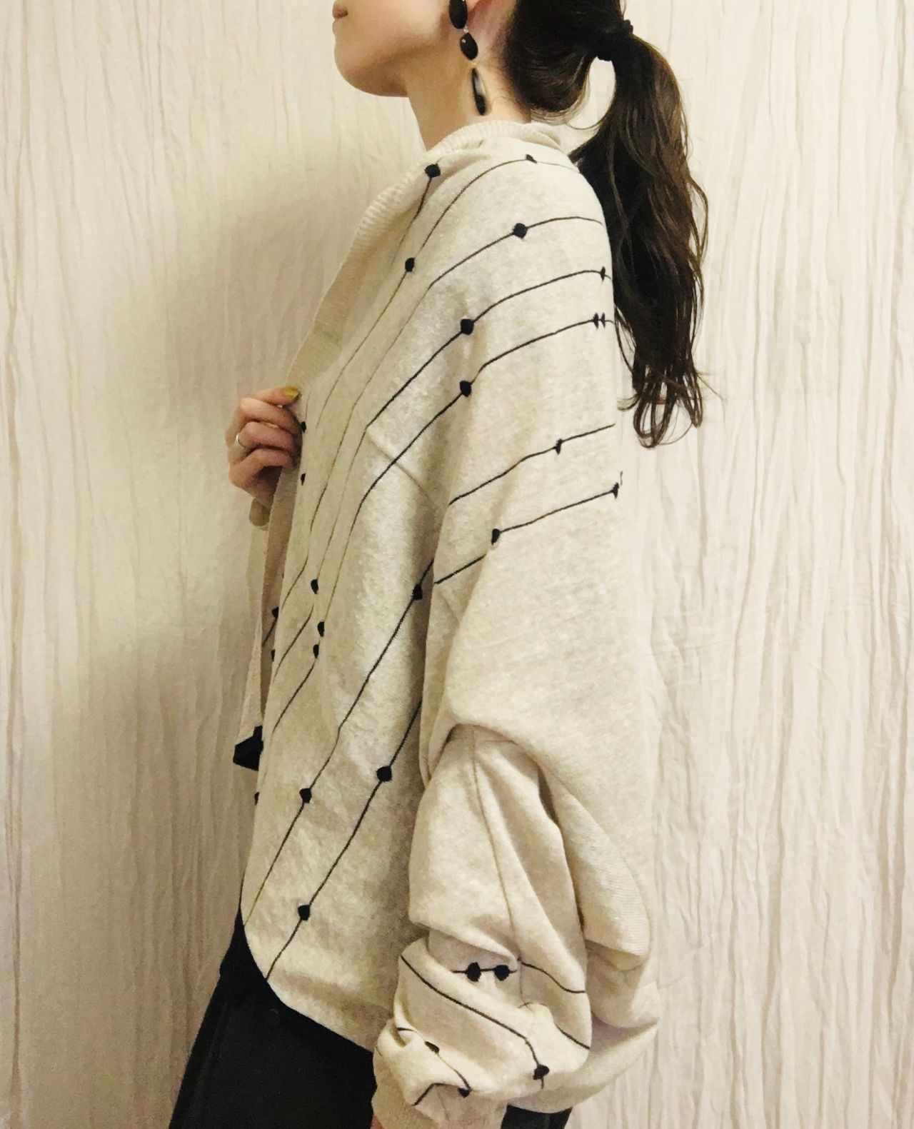 ドルマンスリーブのゆったりとしたシルエットにすることで、