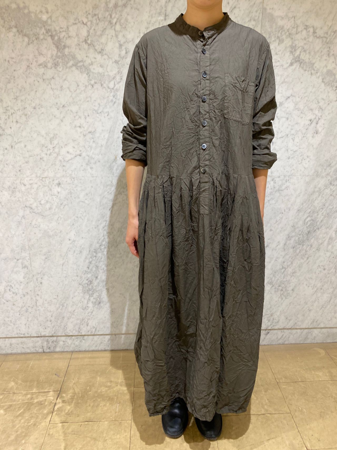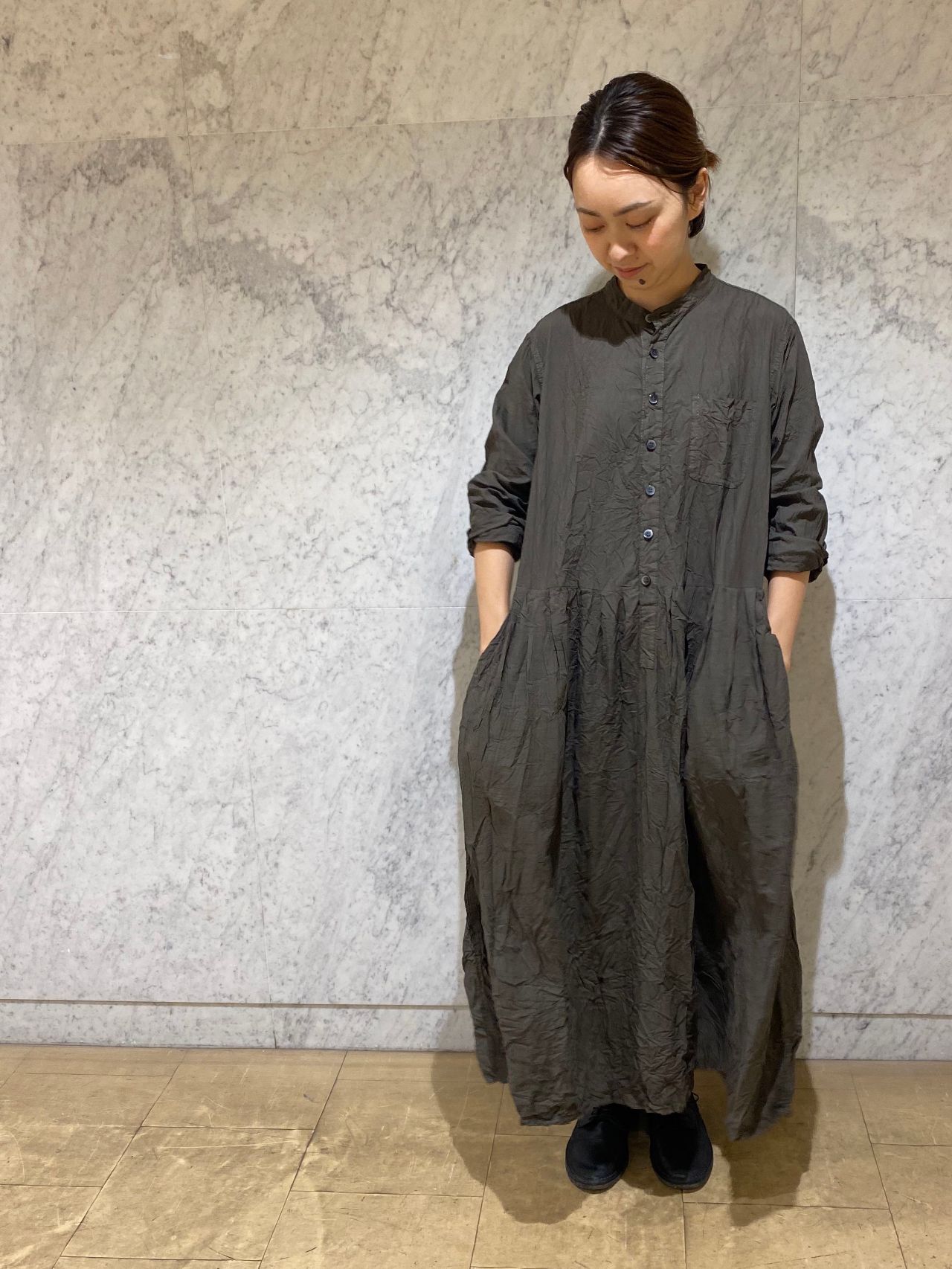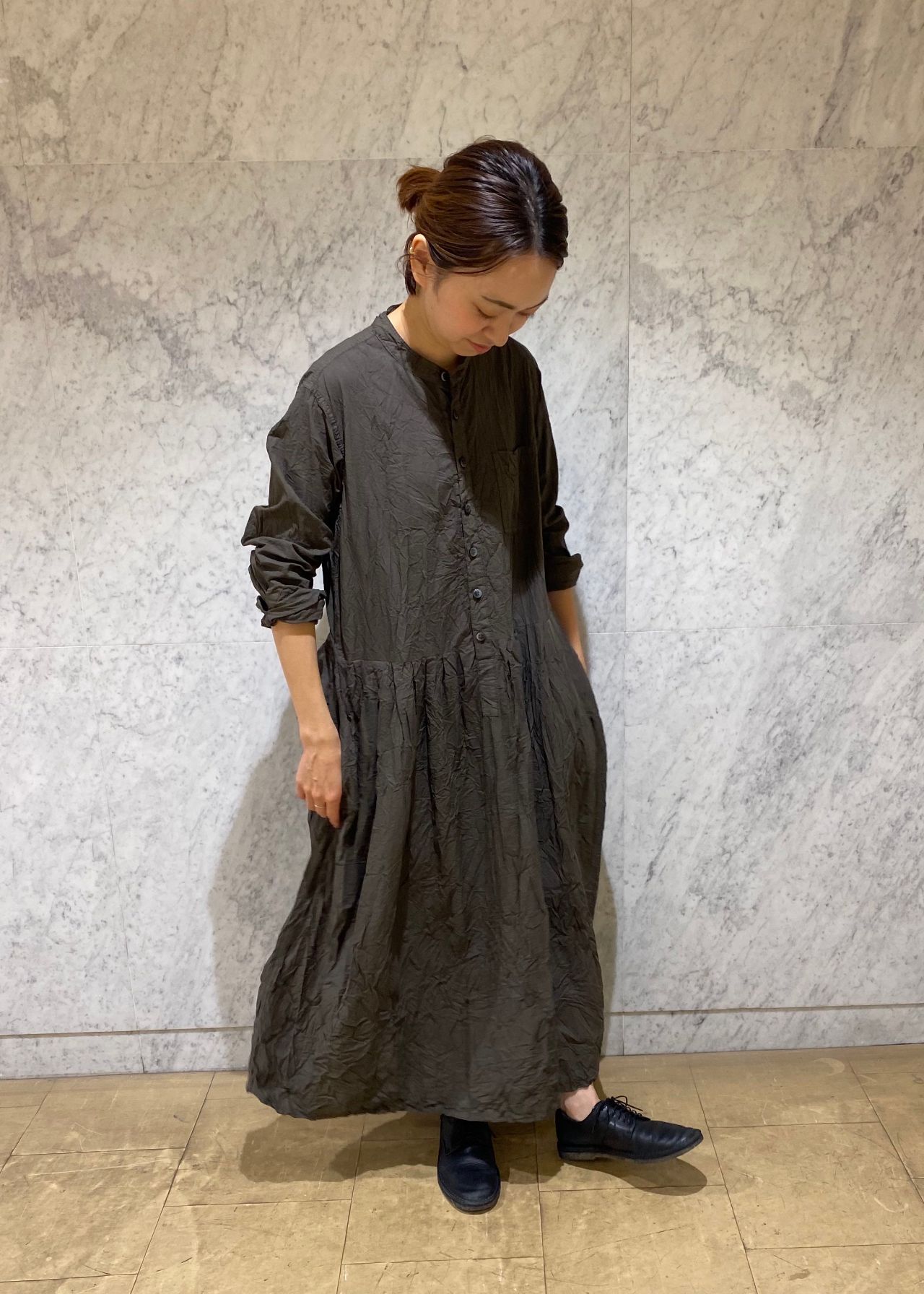 特殊なシワ加工が特徴のタイプライター生地を使ったワンピースは、
