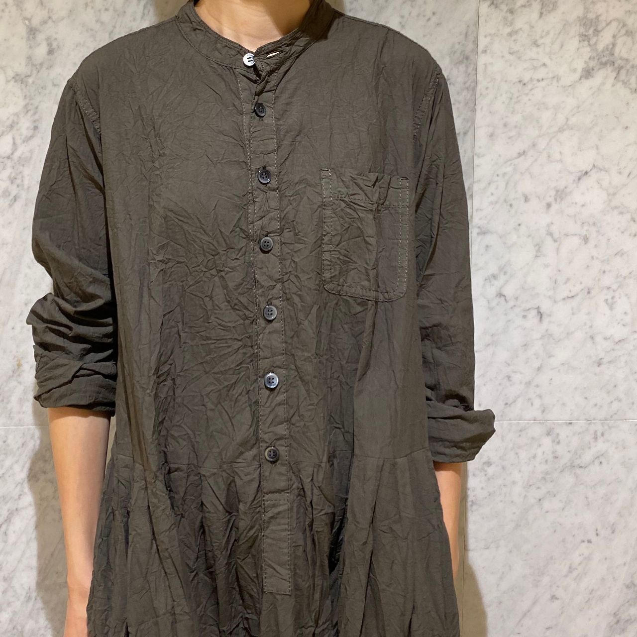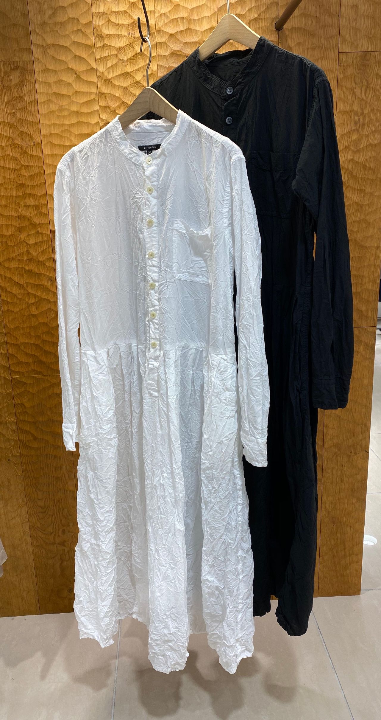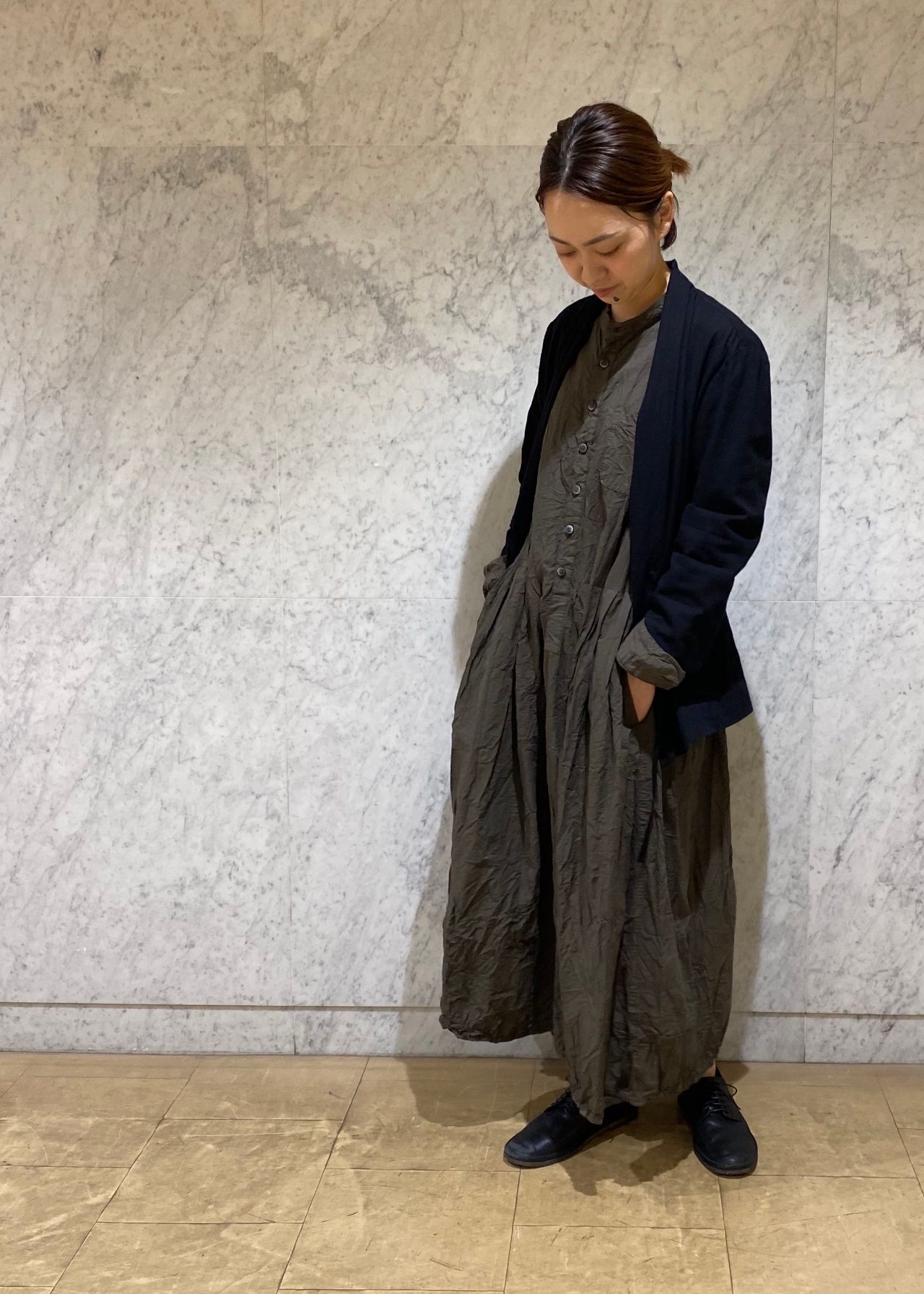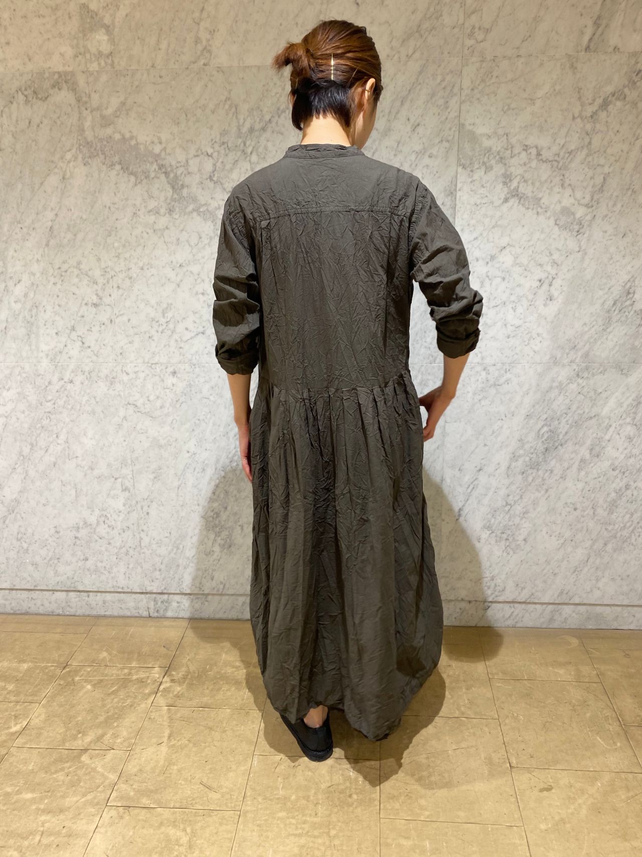 特殊なシワ加工が特徴のタイプライター生地を使ったワンピースは、
