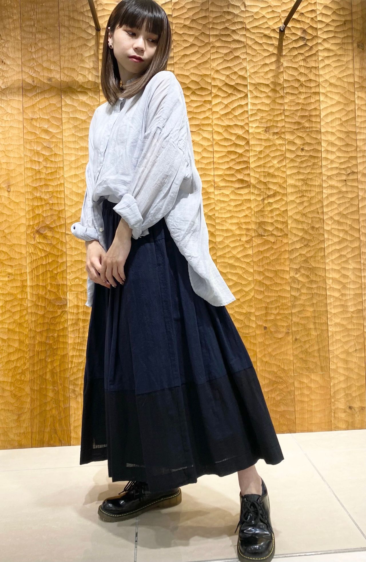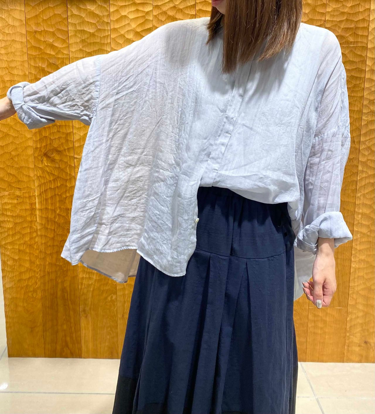 ゆったりとしたシルエットのブラウス。