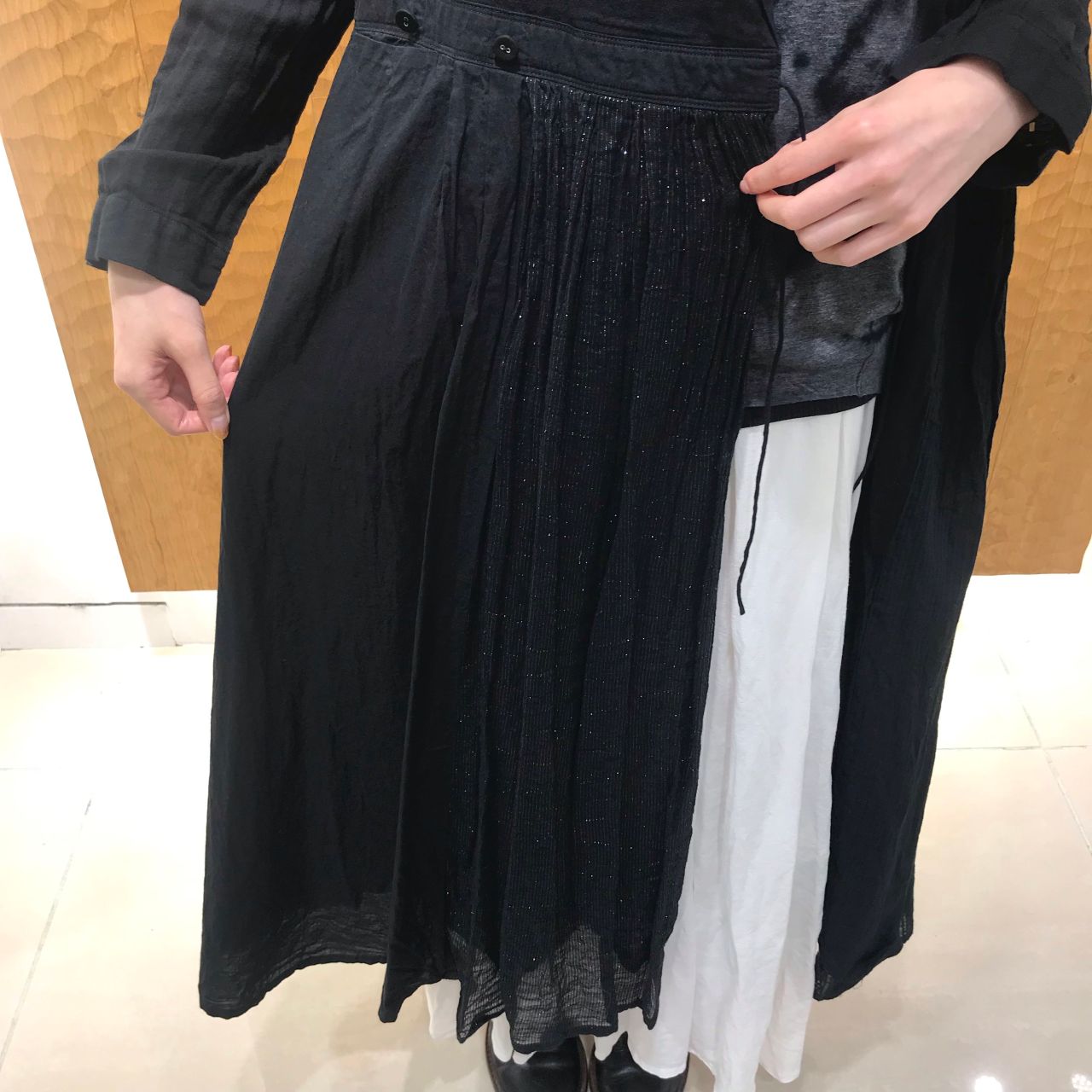 ウエストがスッキリしているのでワイドパンツやスカートと