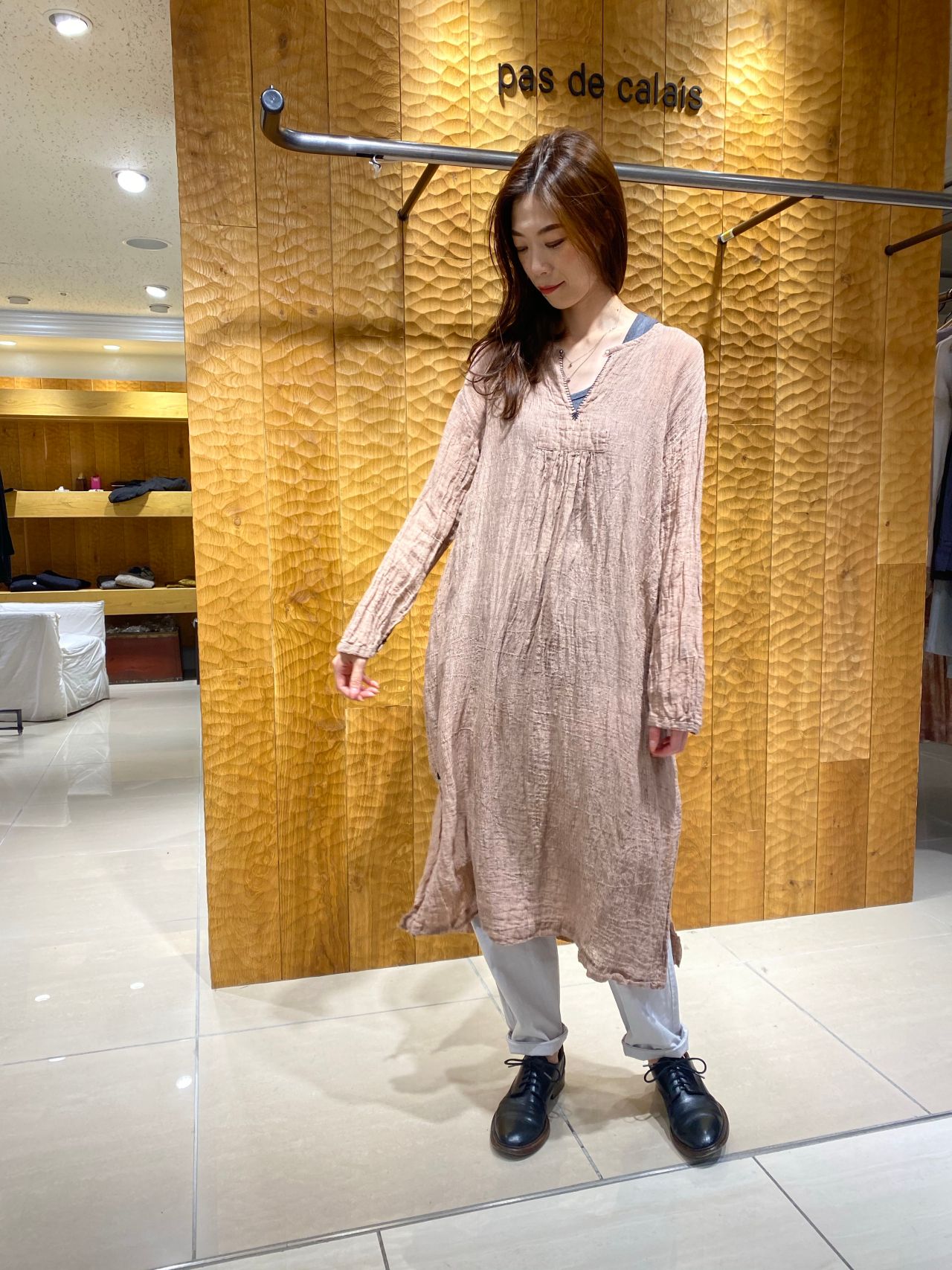 No.4003 リネン先染めボイルワッシャーワンピース