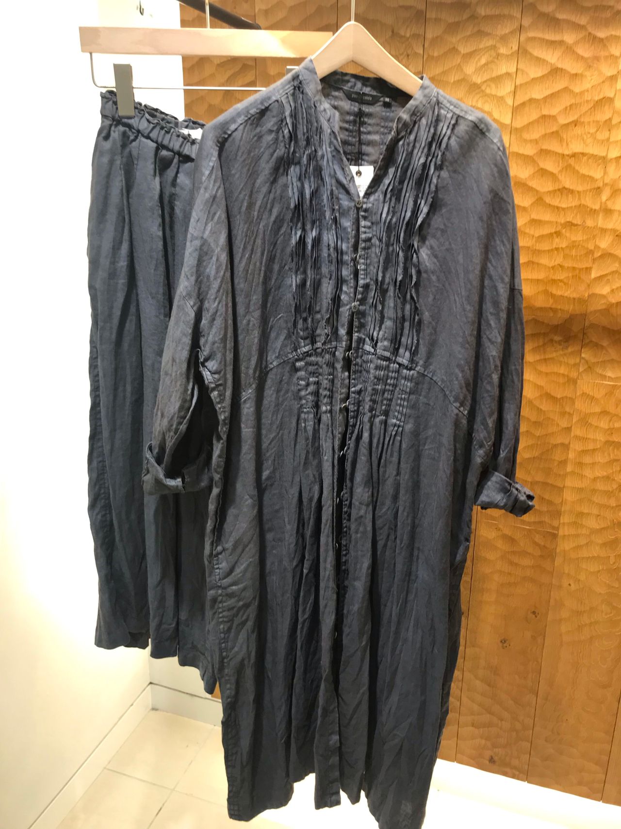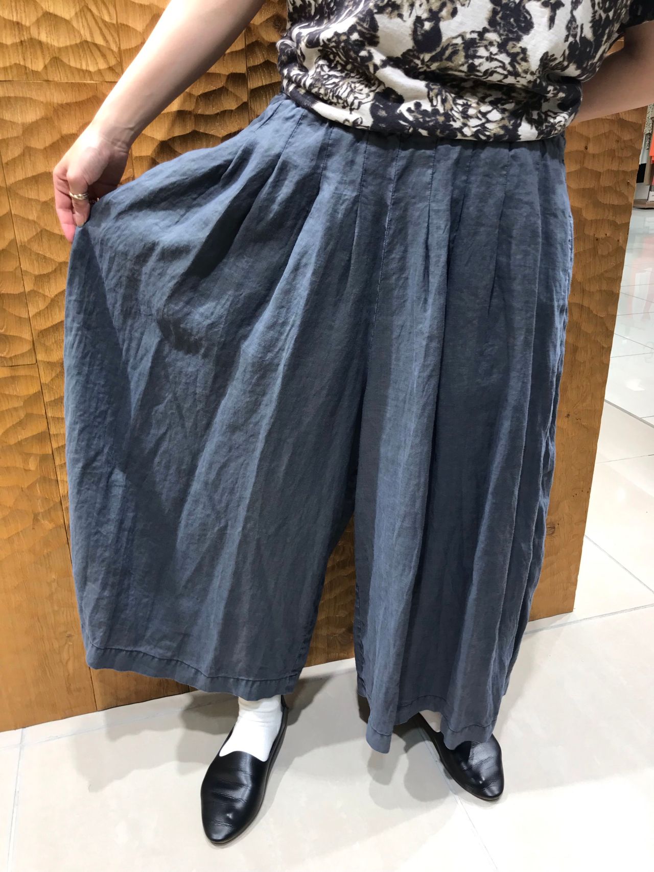 スレン染めで仕上げた麻100%の柔らかい風合いとなっています。