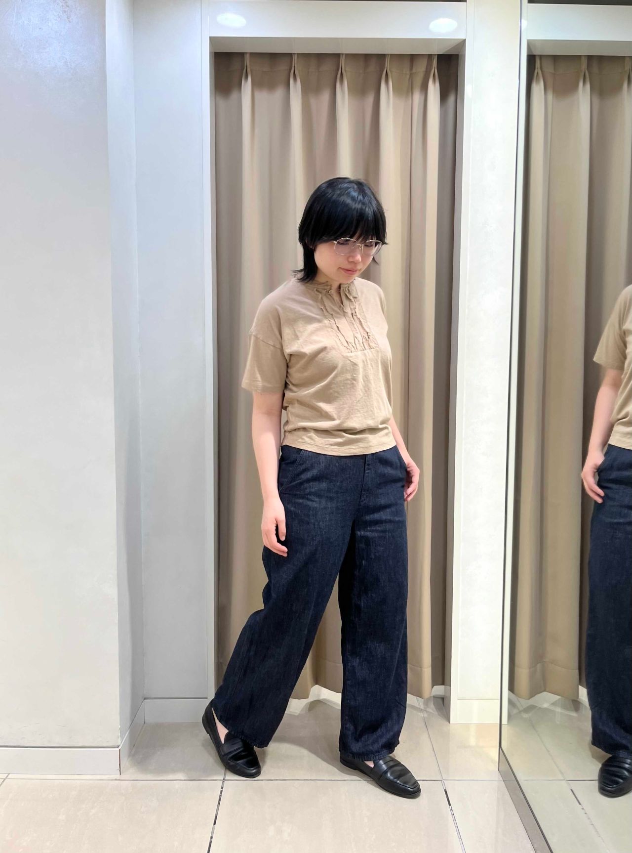 綿麻のデニム生地を、製品にしてからドライウォッシュ加工を施して、しなやかで柔らかい風合いに仕上げたデニムパンツ。