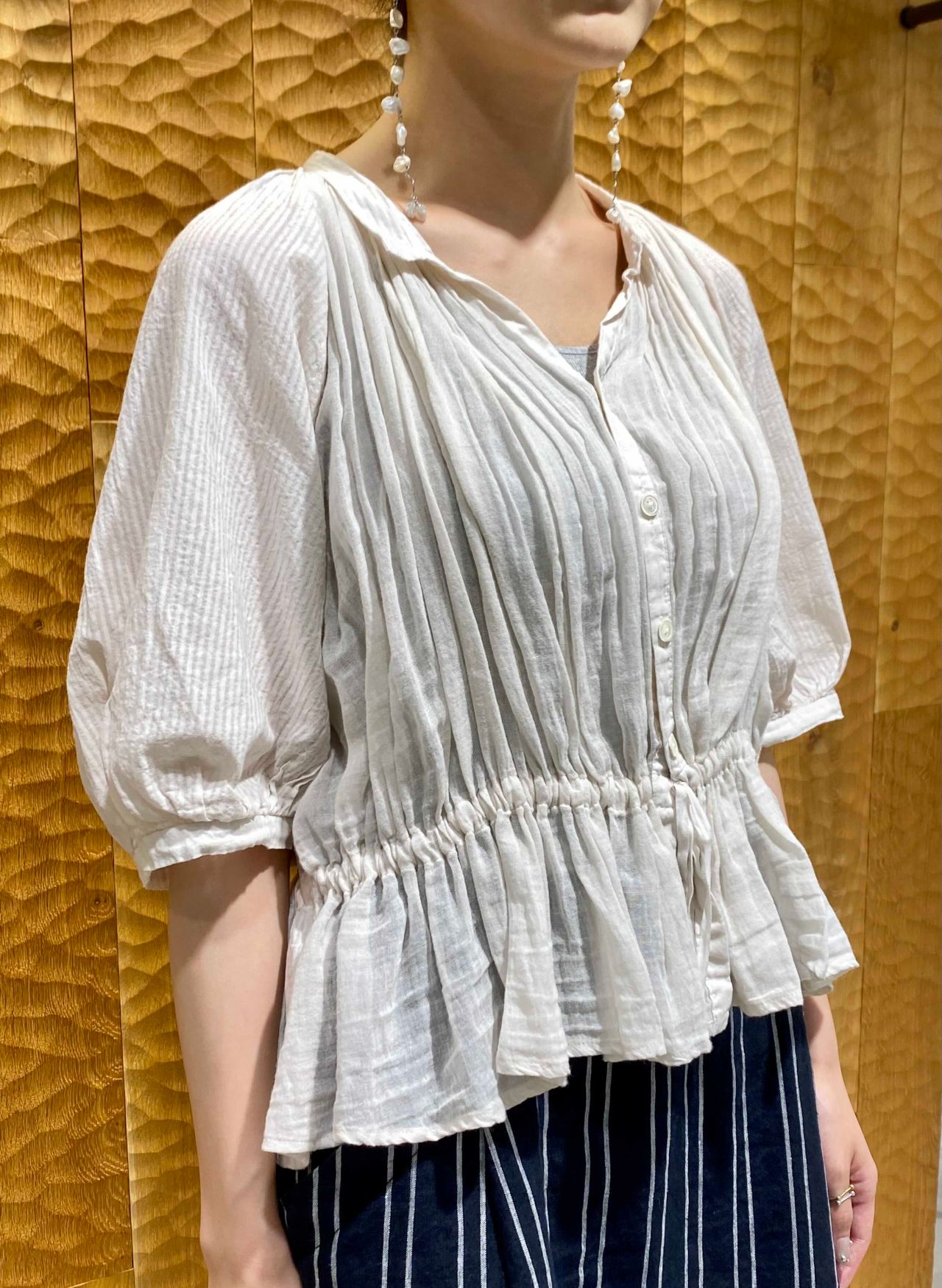 ボリュームのある袖とウエストの絞れるデザインが特徴のブラウスは、
