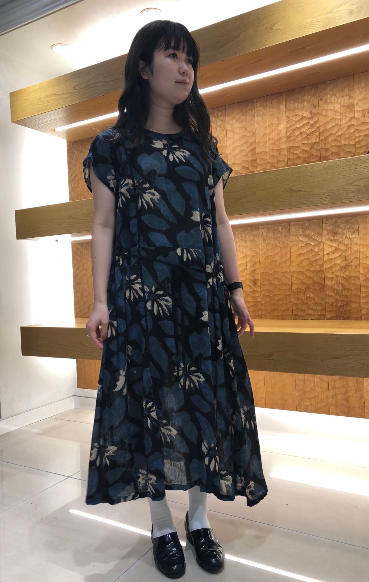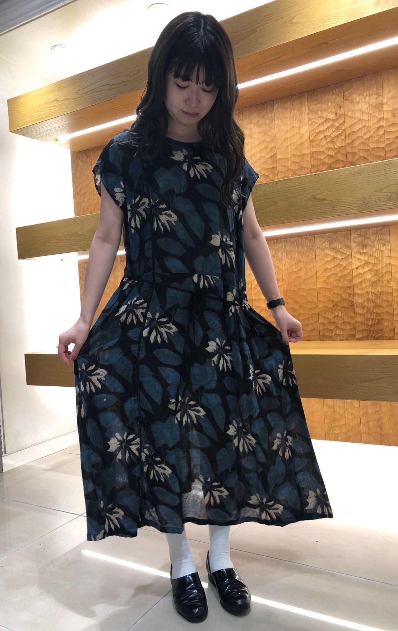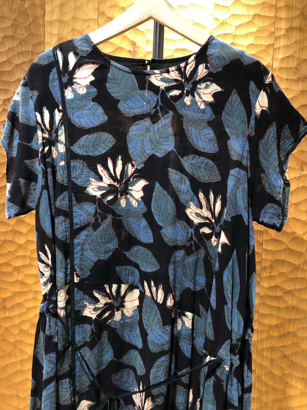 蓮の花のプリントが目を引くワンピースです。