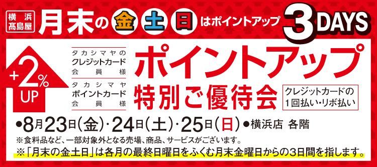 期間中、髙島屋カードでお買い物して頂くと通常の+2%のポイントをお付け致します。