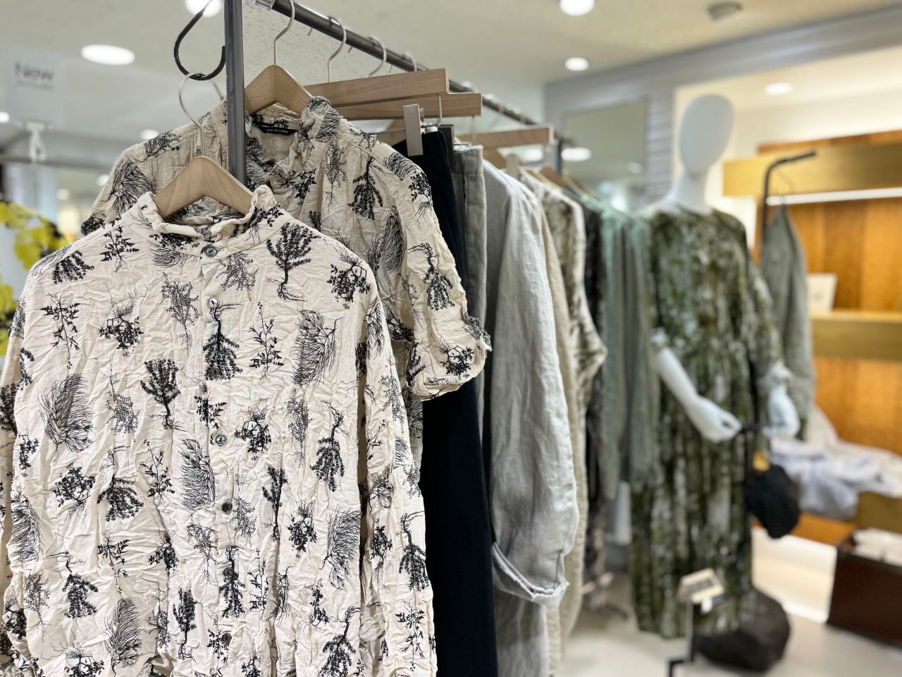 食せる野草をモチーフにしたプリントや、春の草木染め、日本の伝統技術が詰まった染めなど、パドカレならではのアイテムが揃っております。