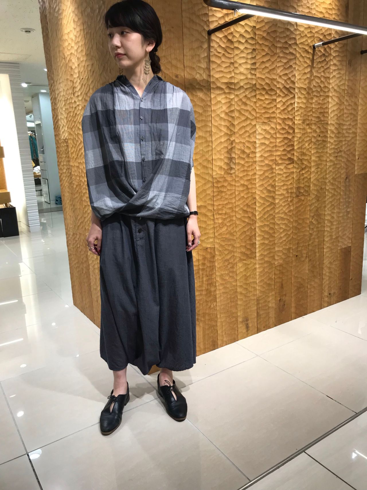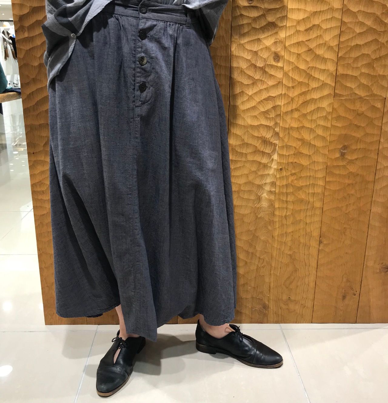 透けない素材なので素足でサラッと涼しく着られるオススメアイテムです。