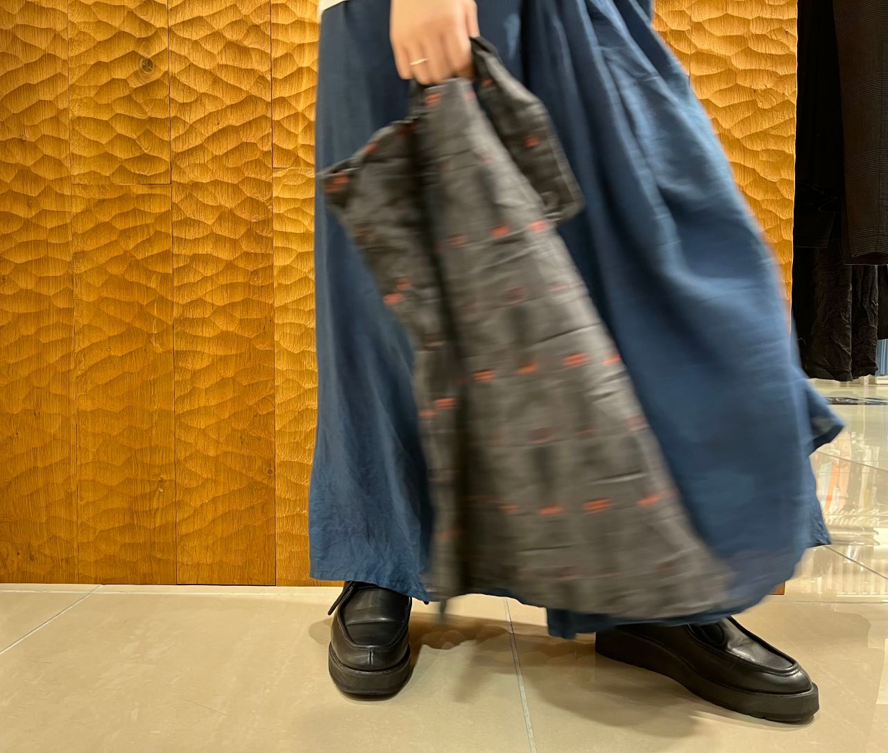 ブラックのカラーは秋冬らしくコーディネートを引き締め、