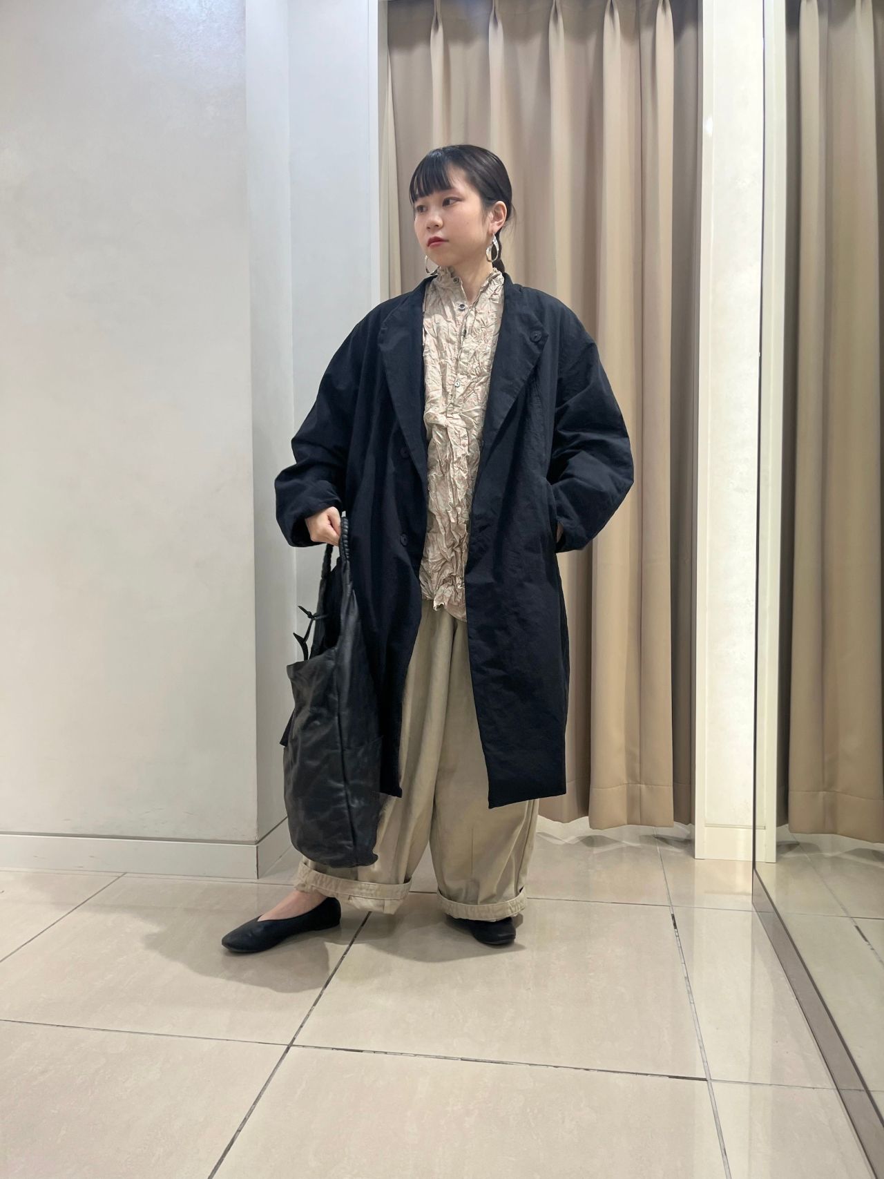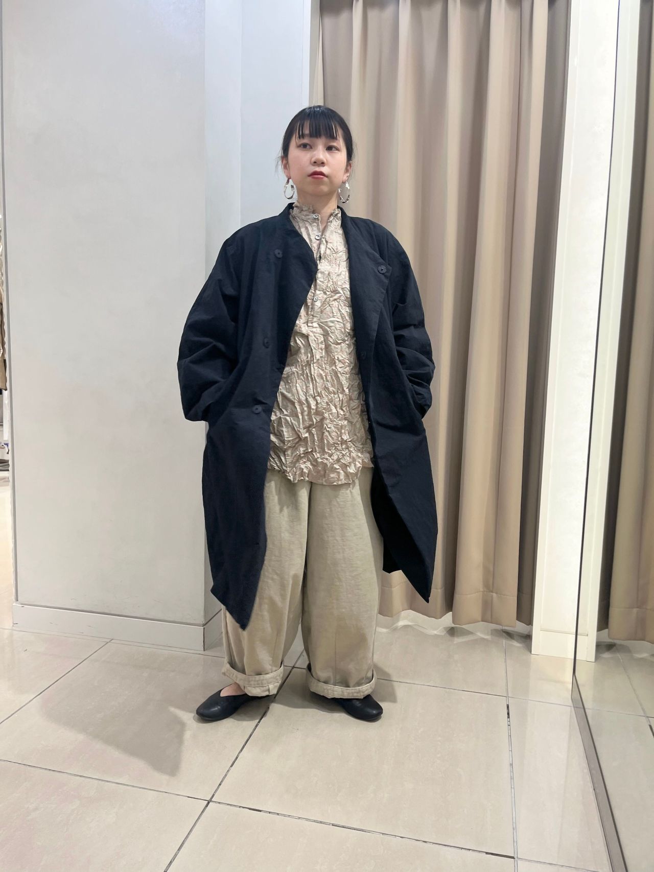 敢えて柔らかいカラーに張り感のある綿麻のハーフコートを合わせ、全体にまとまりがでる様組み合わせました。
