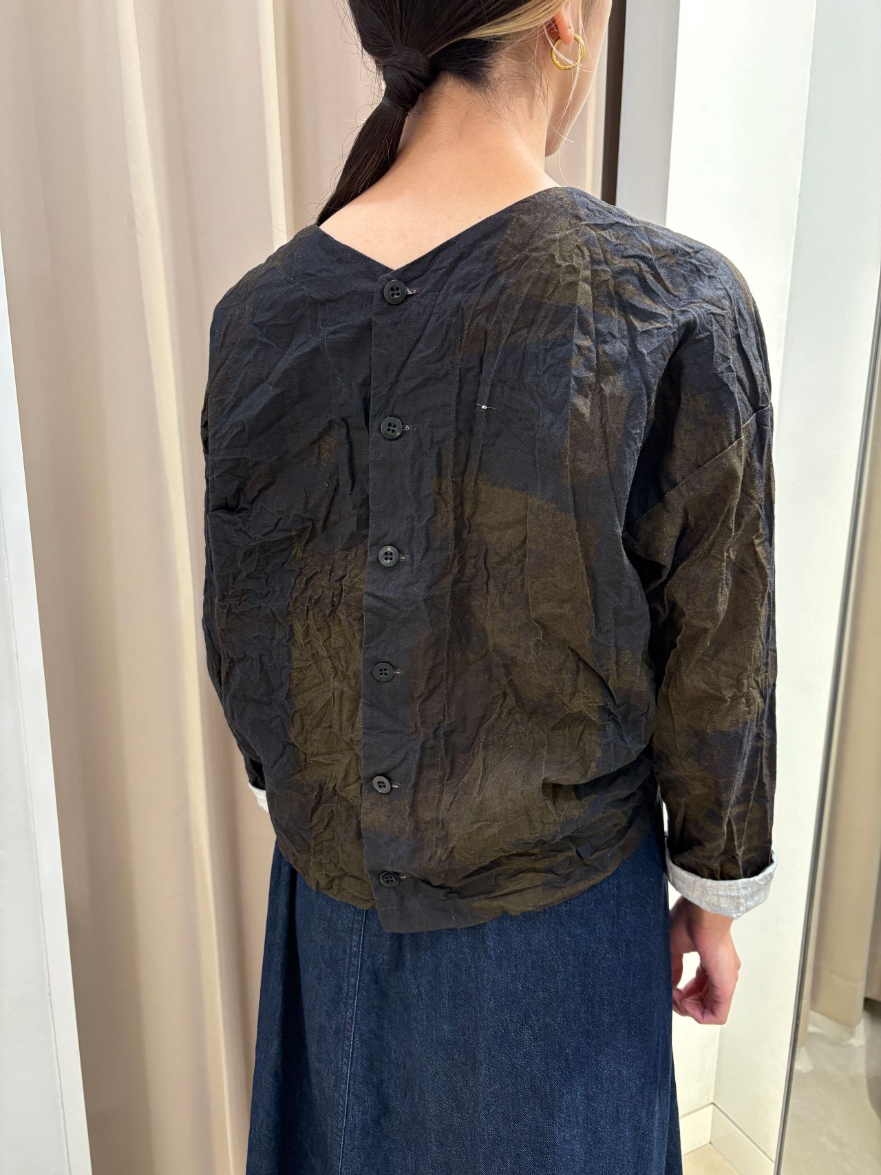 シワ加工が施された重厚感のある生地で、透け感なく1枚でも簡単にお召しいただけます。