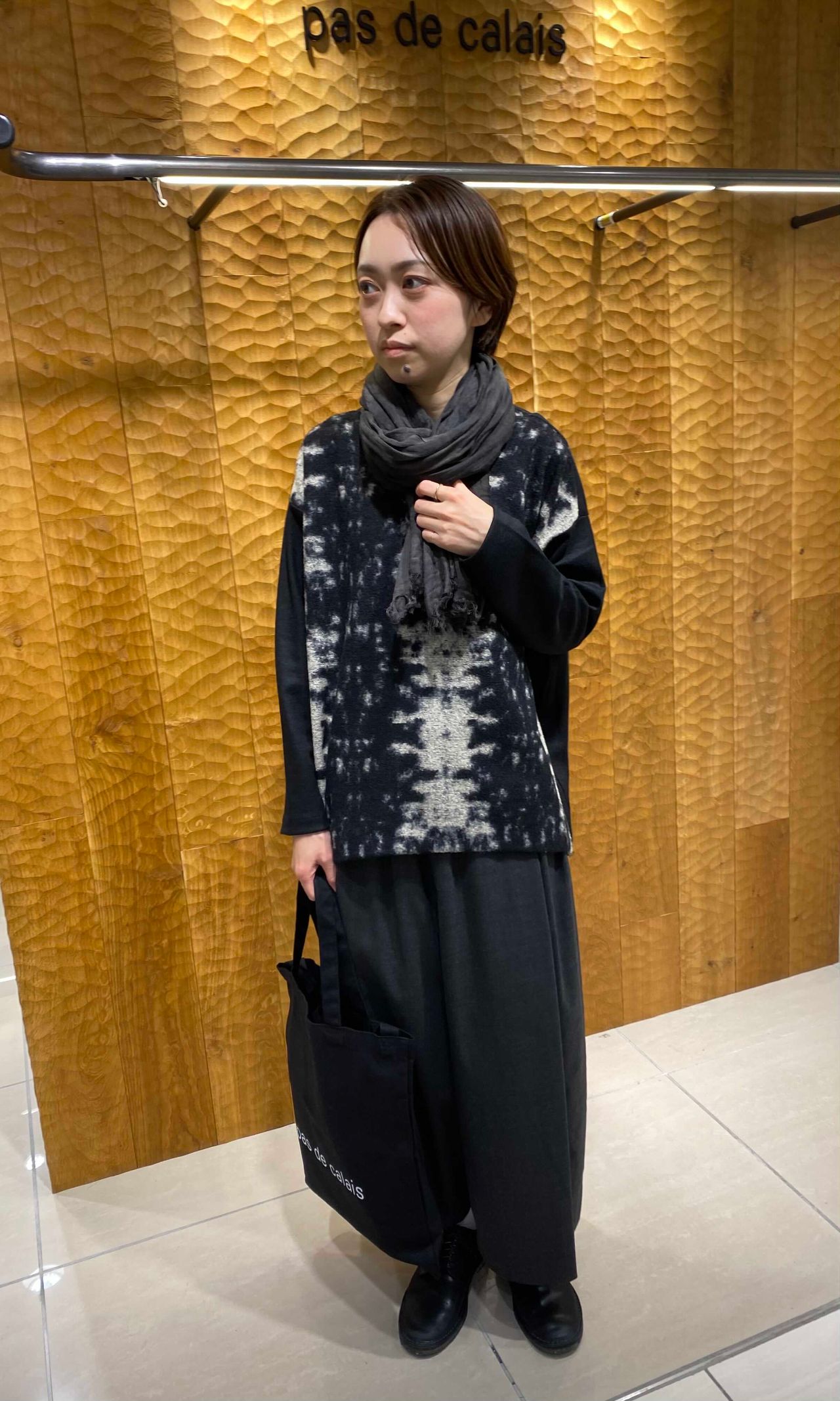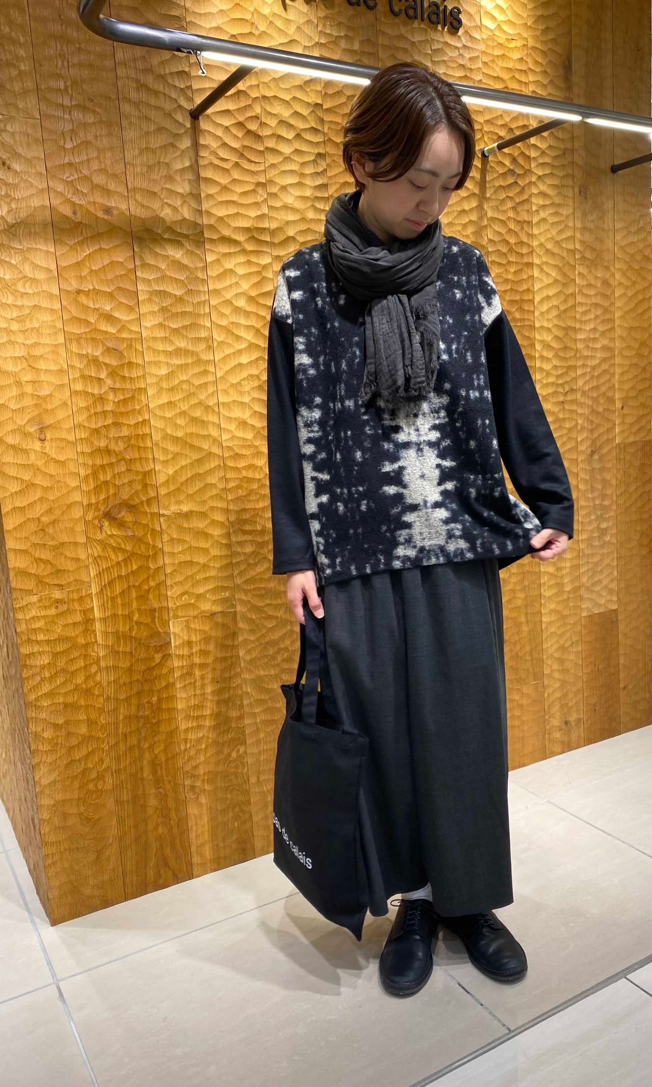 柄を引き立たせる為に、合わせたアイテムの色をワントーンにまとめました。