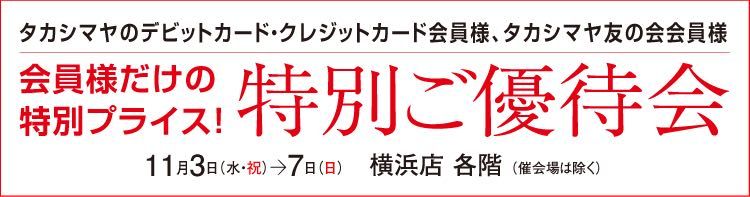 上記期間中、タカシマヤカードもしくは友の会カードをご利用いただくと、全品10%OFFにてお求めいただけます。