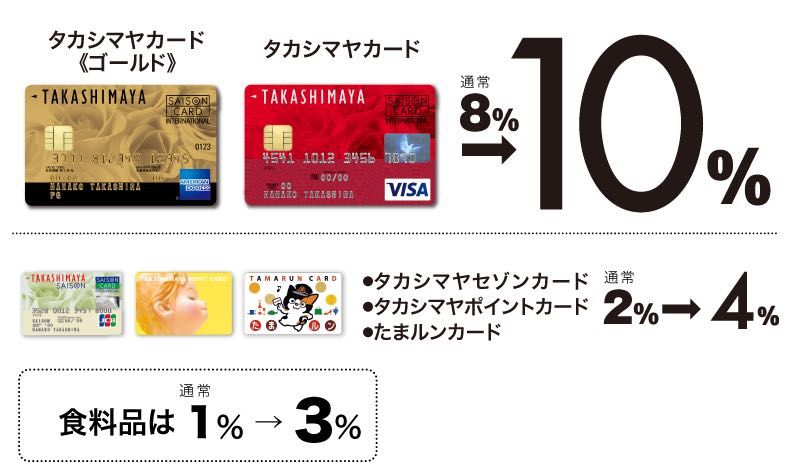 期間中、高島屋カード、dポイント、Pontaカード提示によりポイントが通常時よりアップ致します。
