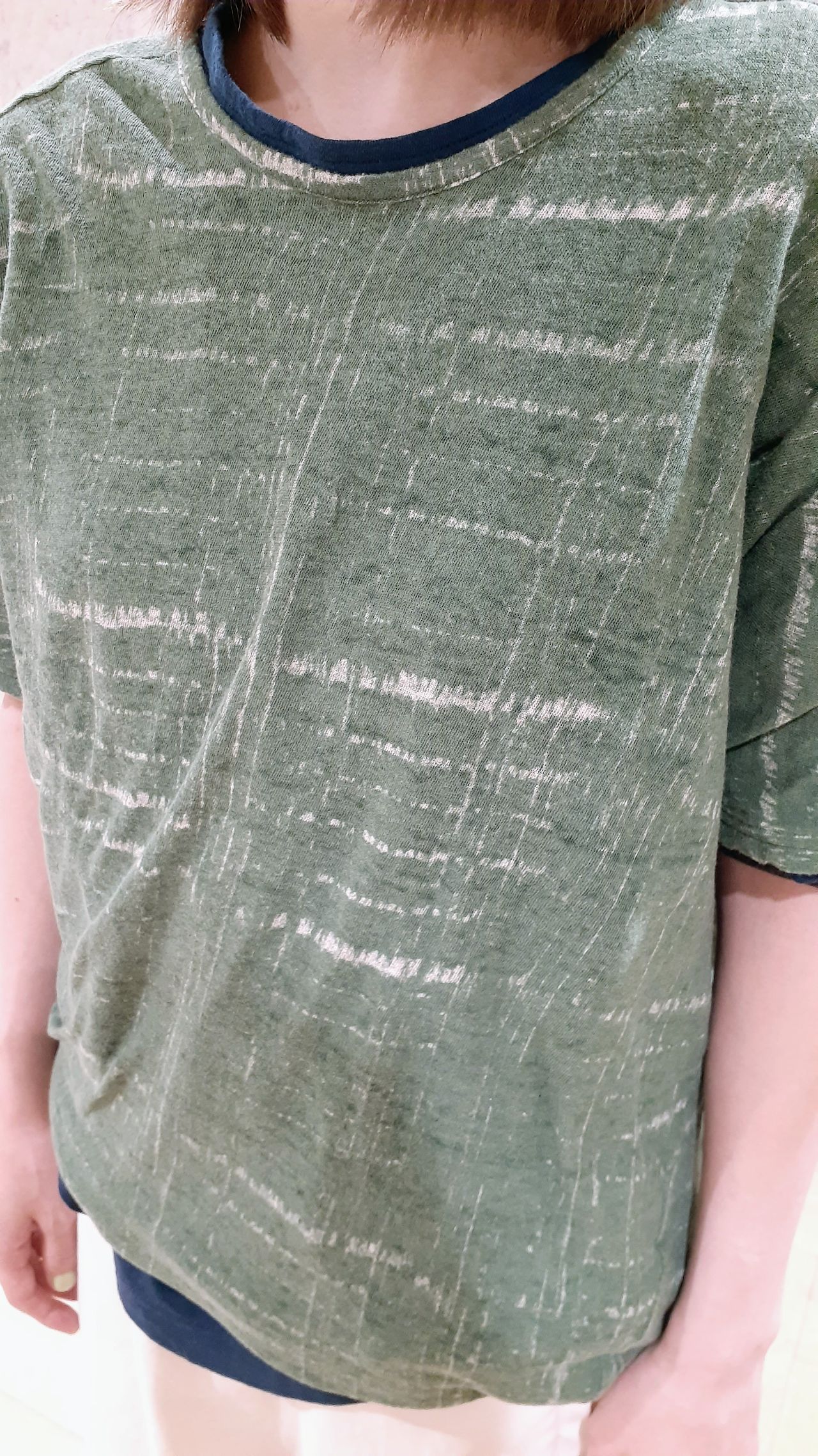 新作のカットソーのグリーンに