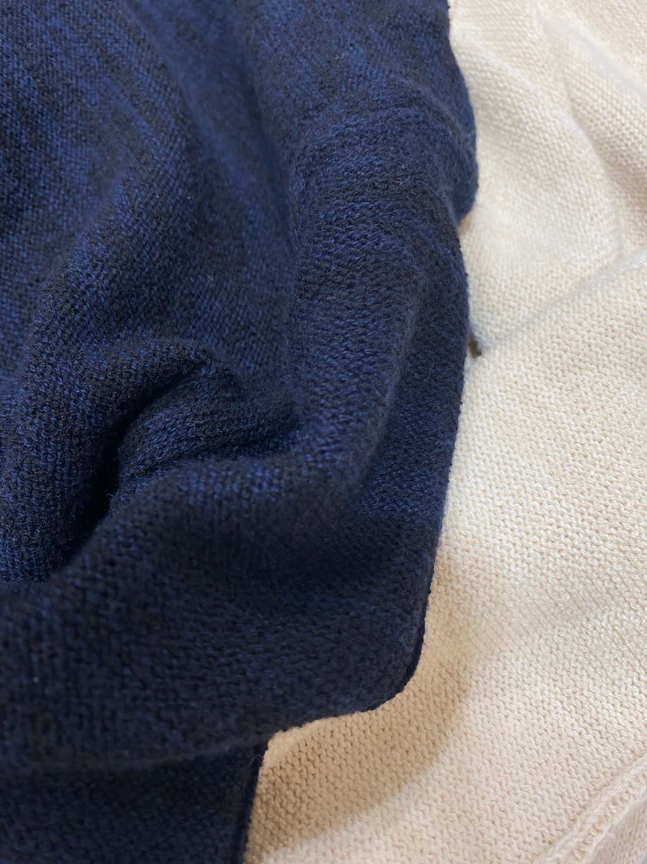 綿麻糸を撚り合わせて、独特な色のニュアンスが感じられるようにアレンジ。
