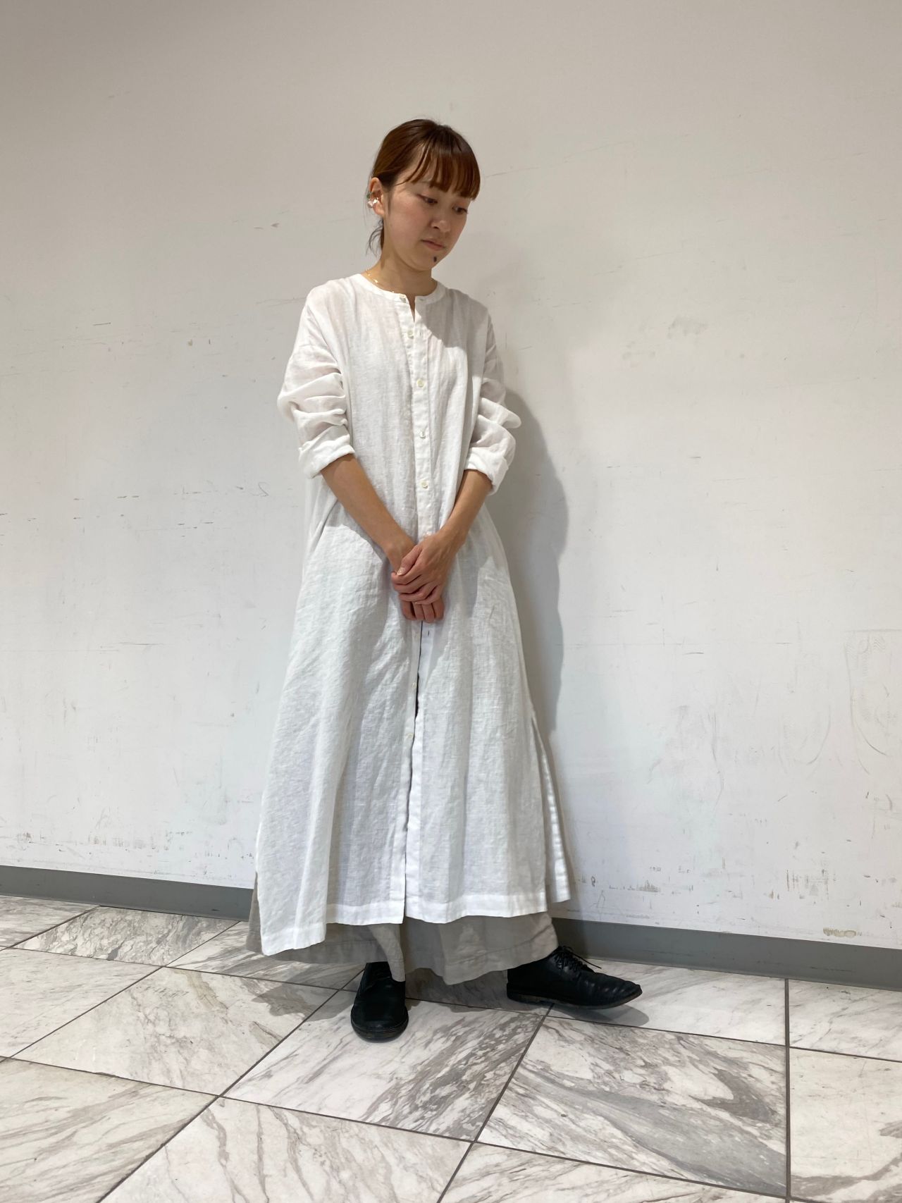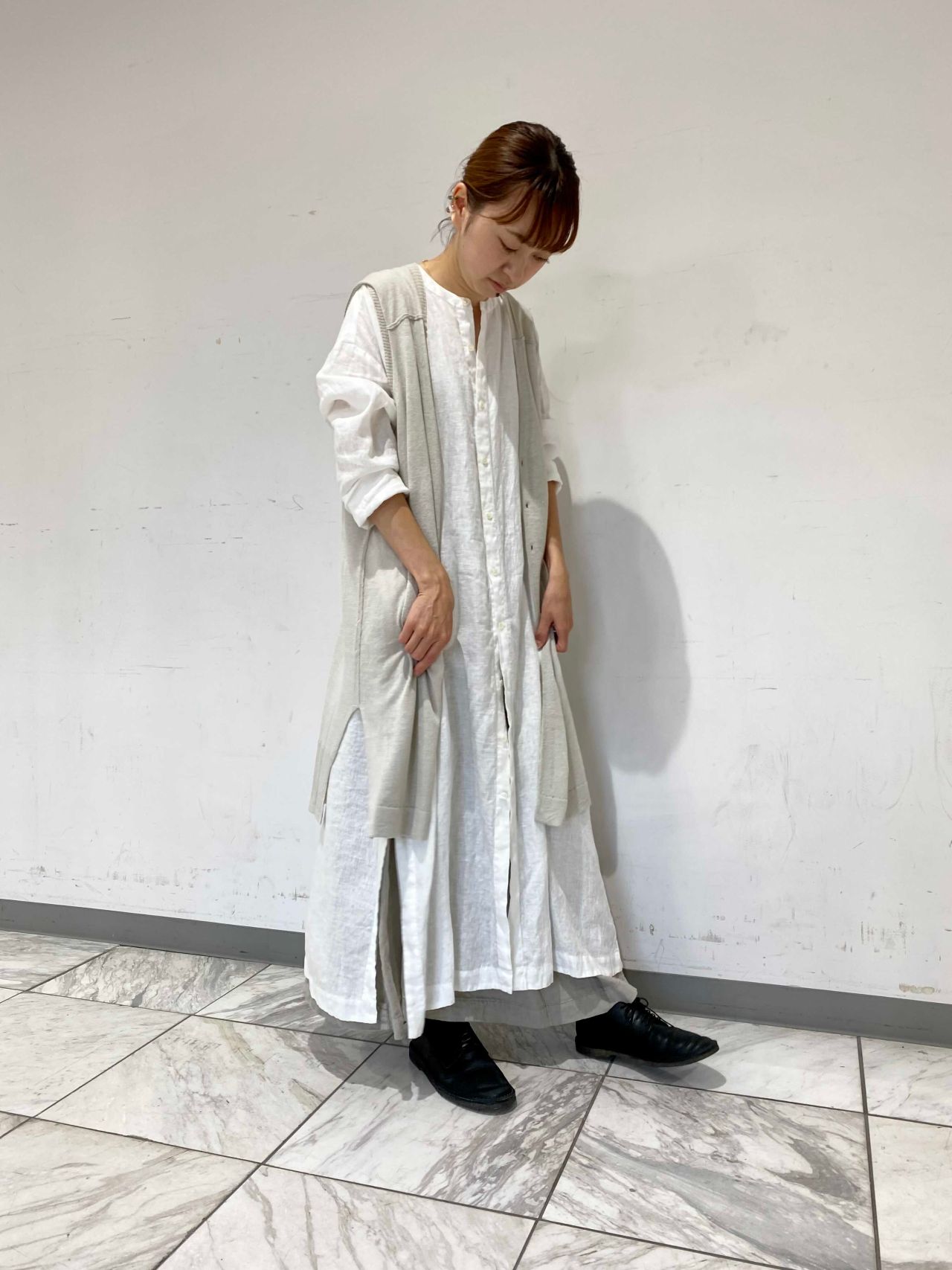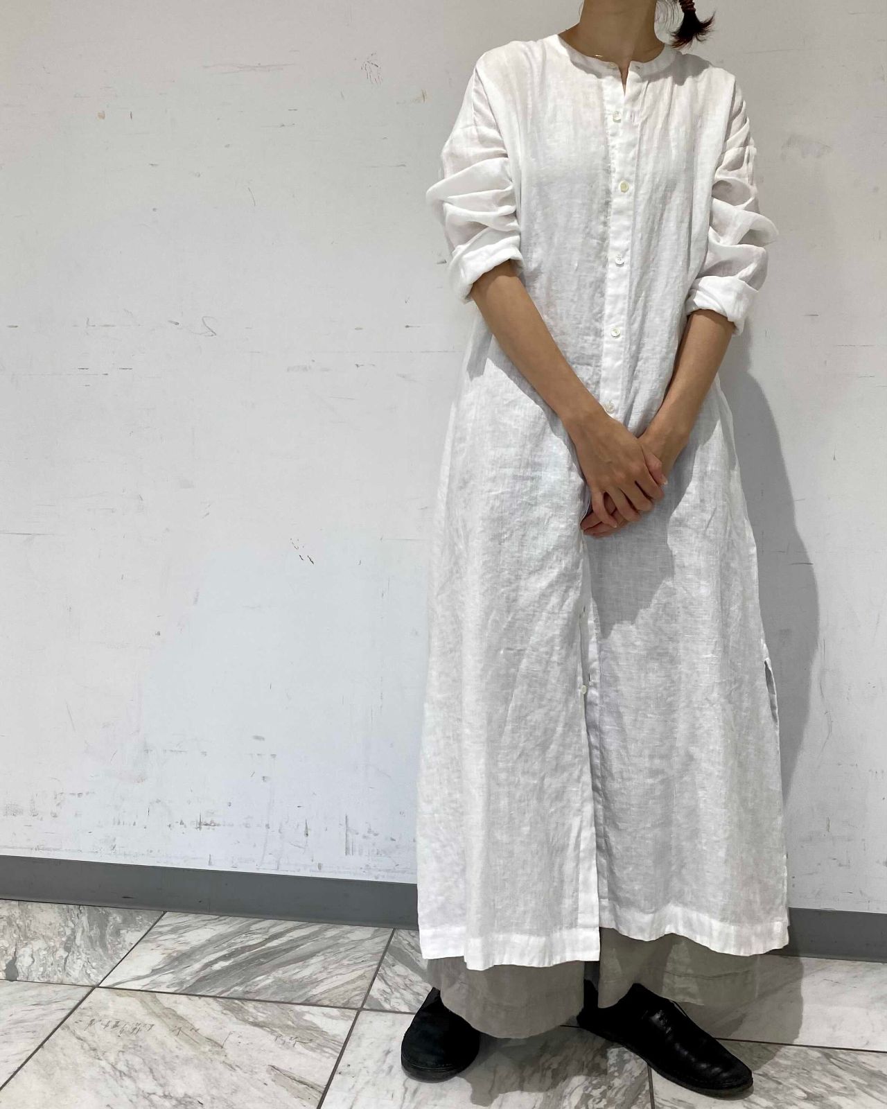 潔白のリネンワンピースを主役にまとめたコーディネート。