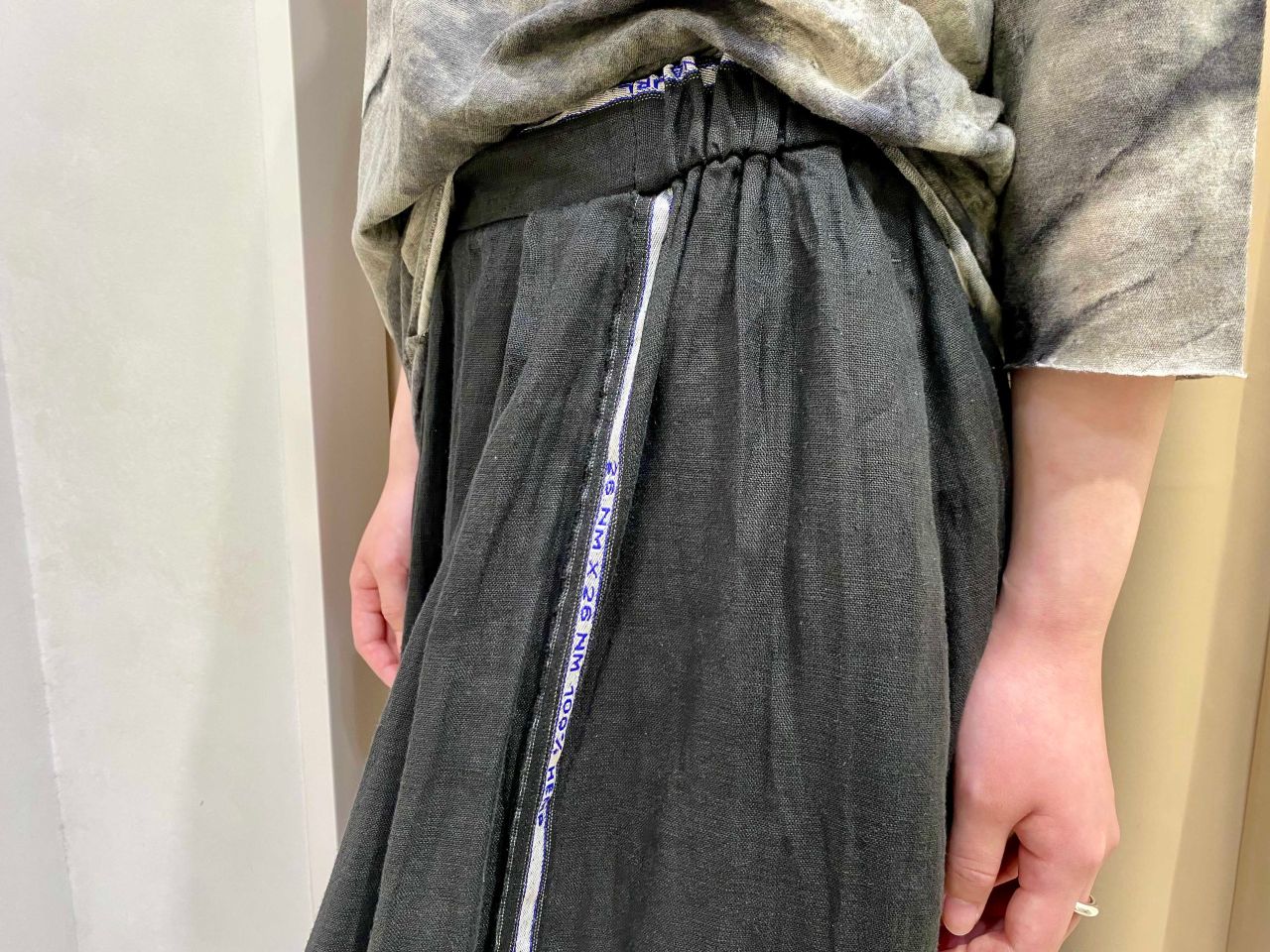 またスカートはウエストベルト端と切り替え部分にスポーティーなラインの生地耳があり、アクセントになっています。