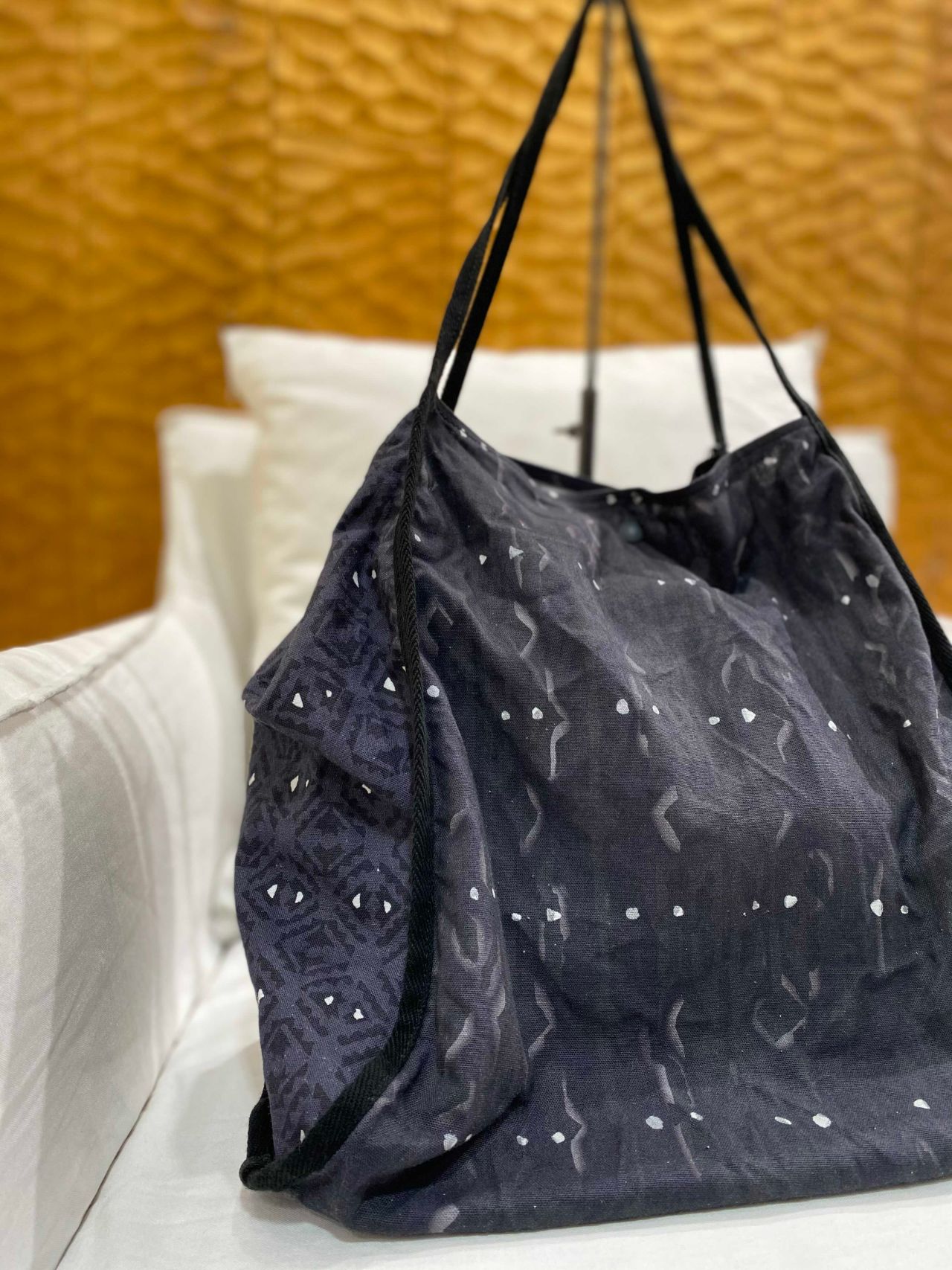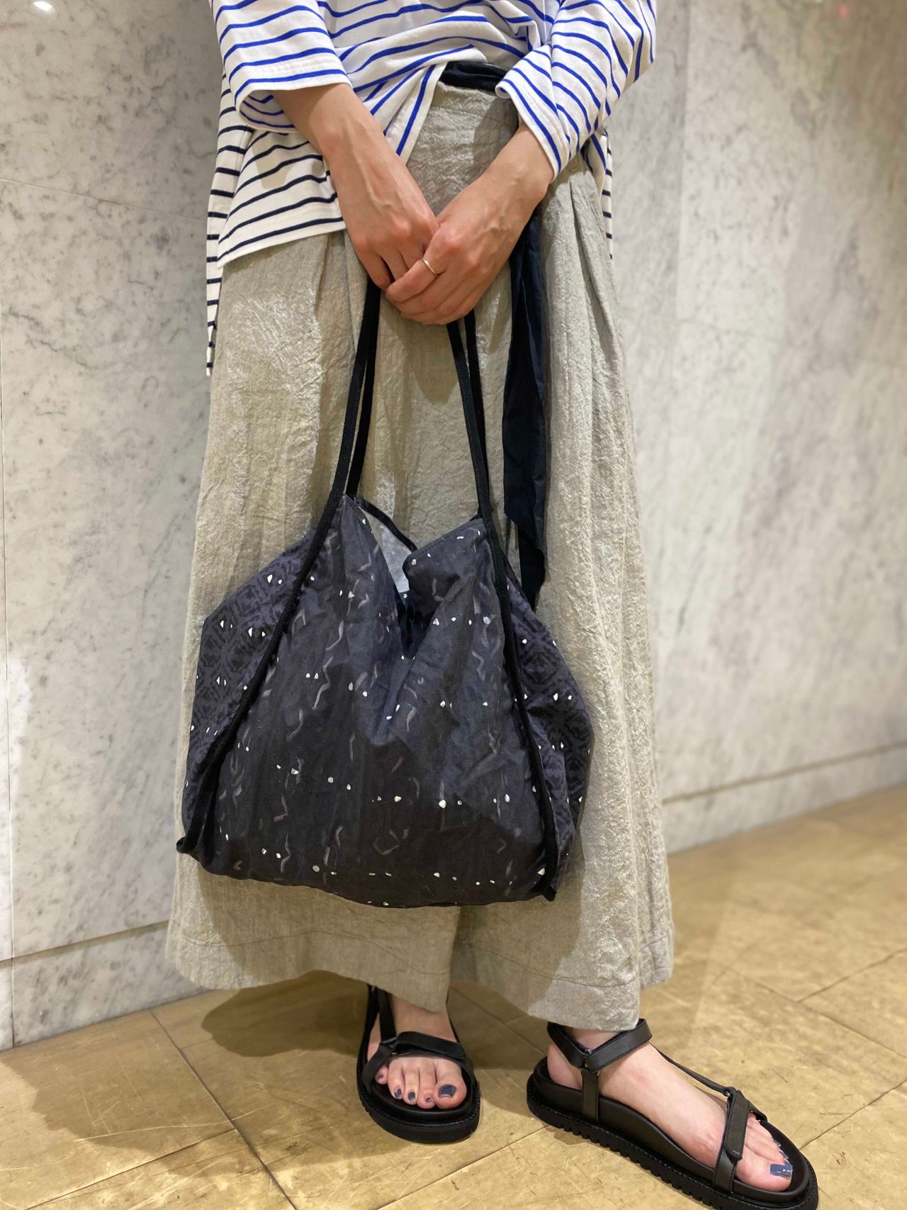 2021s/sカタログに掲載されたブロックプリントの柄を使ったバックは、