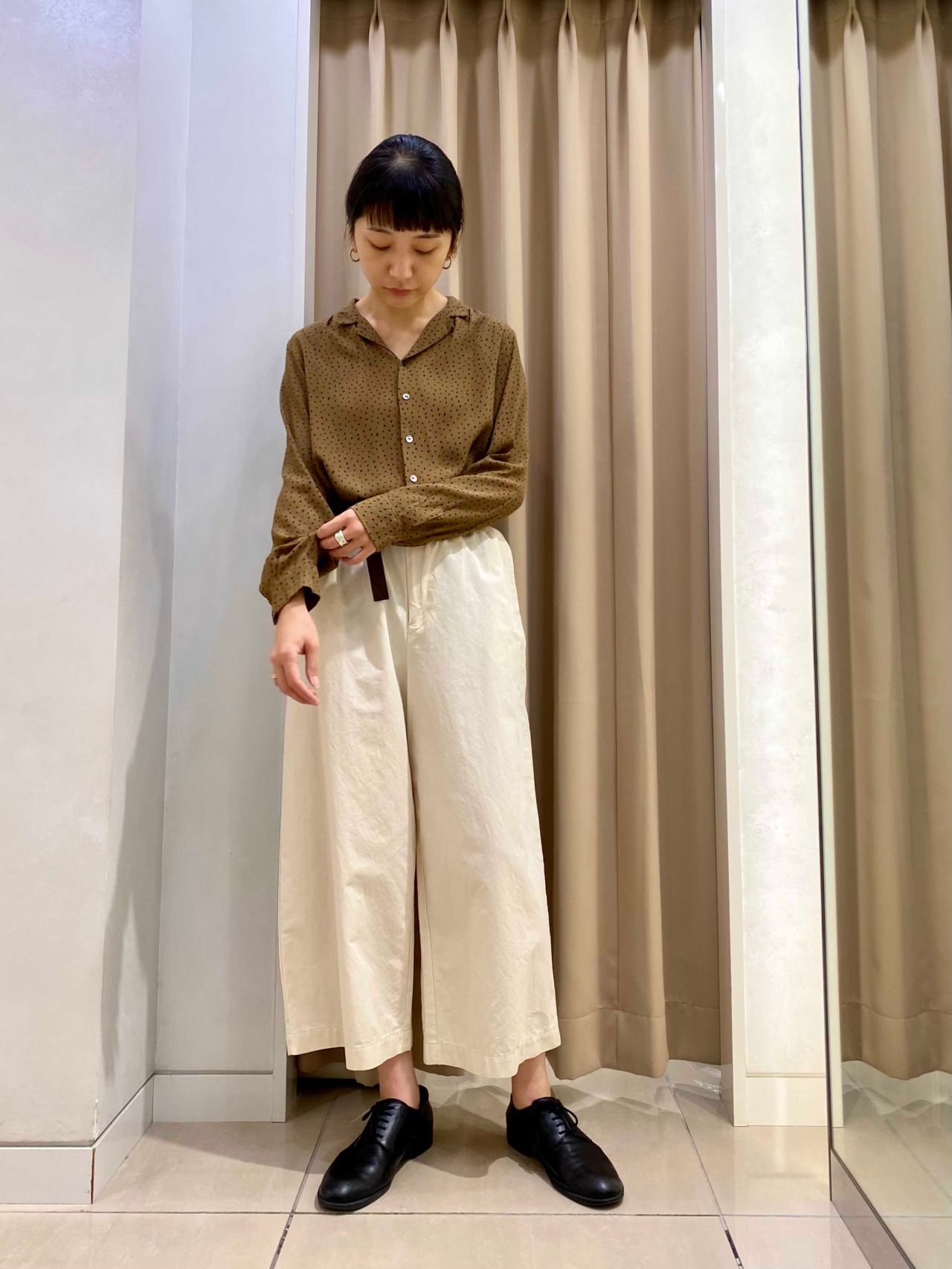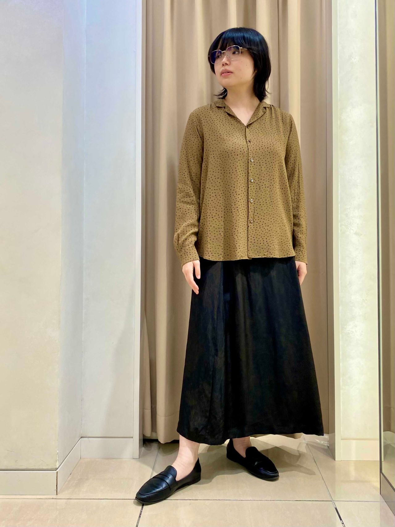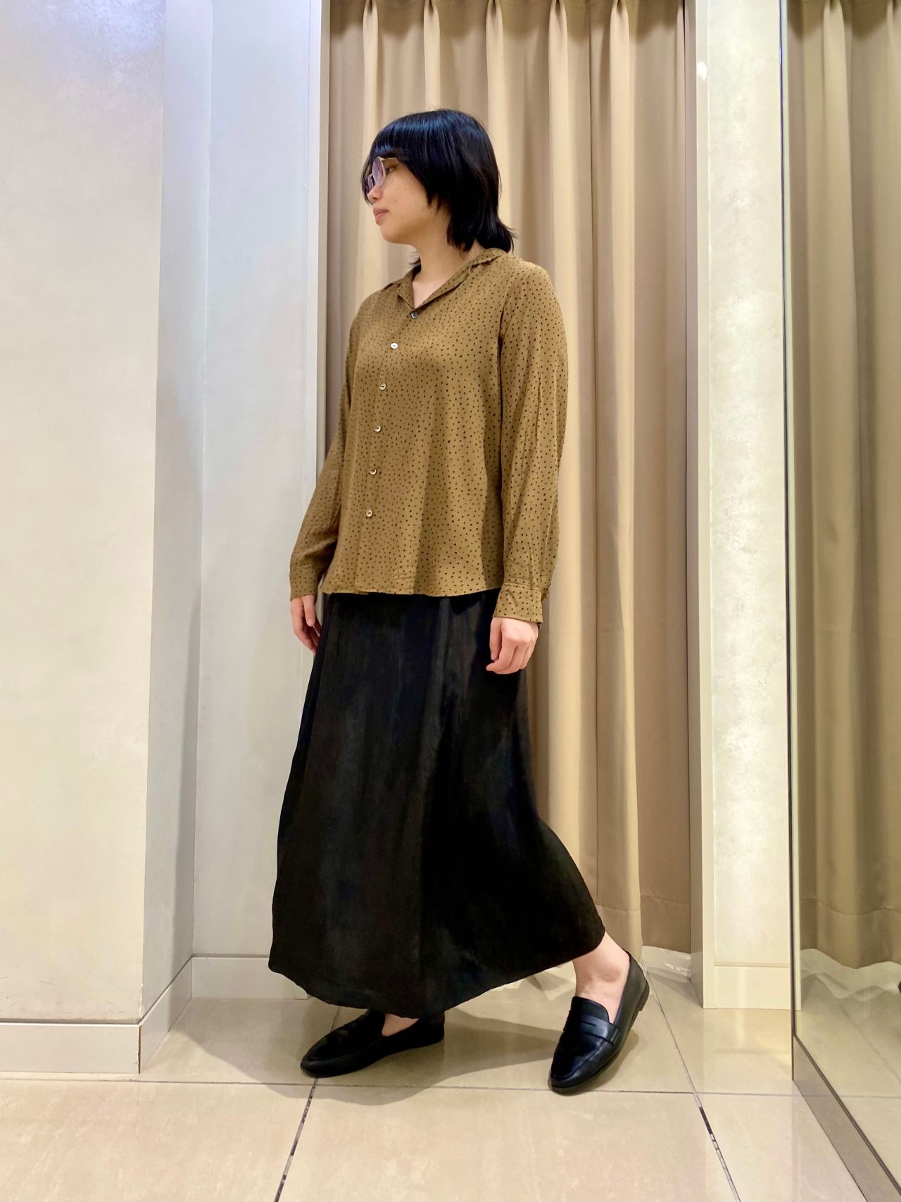 本日はレーヨンデシンプリントブラウスを使った横浜髙島屋店オススメのコーディネートをご紹介いたします。