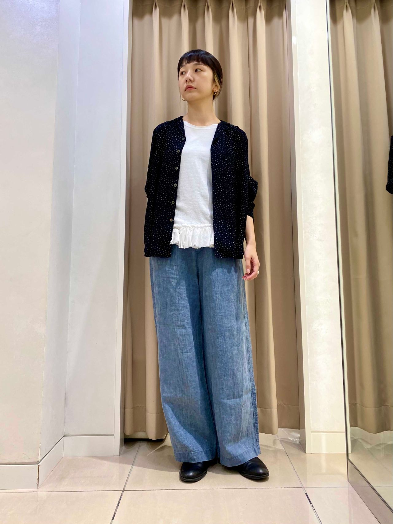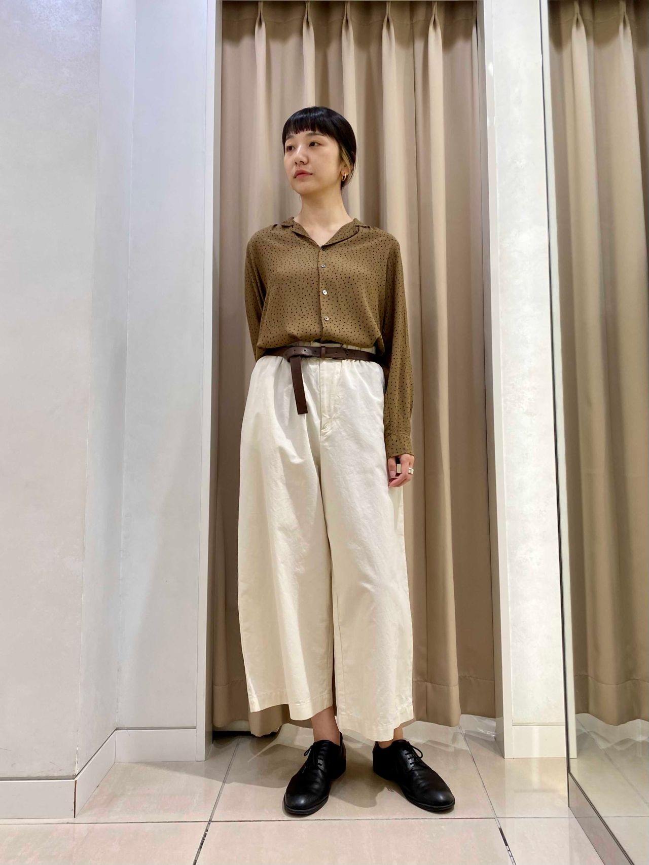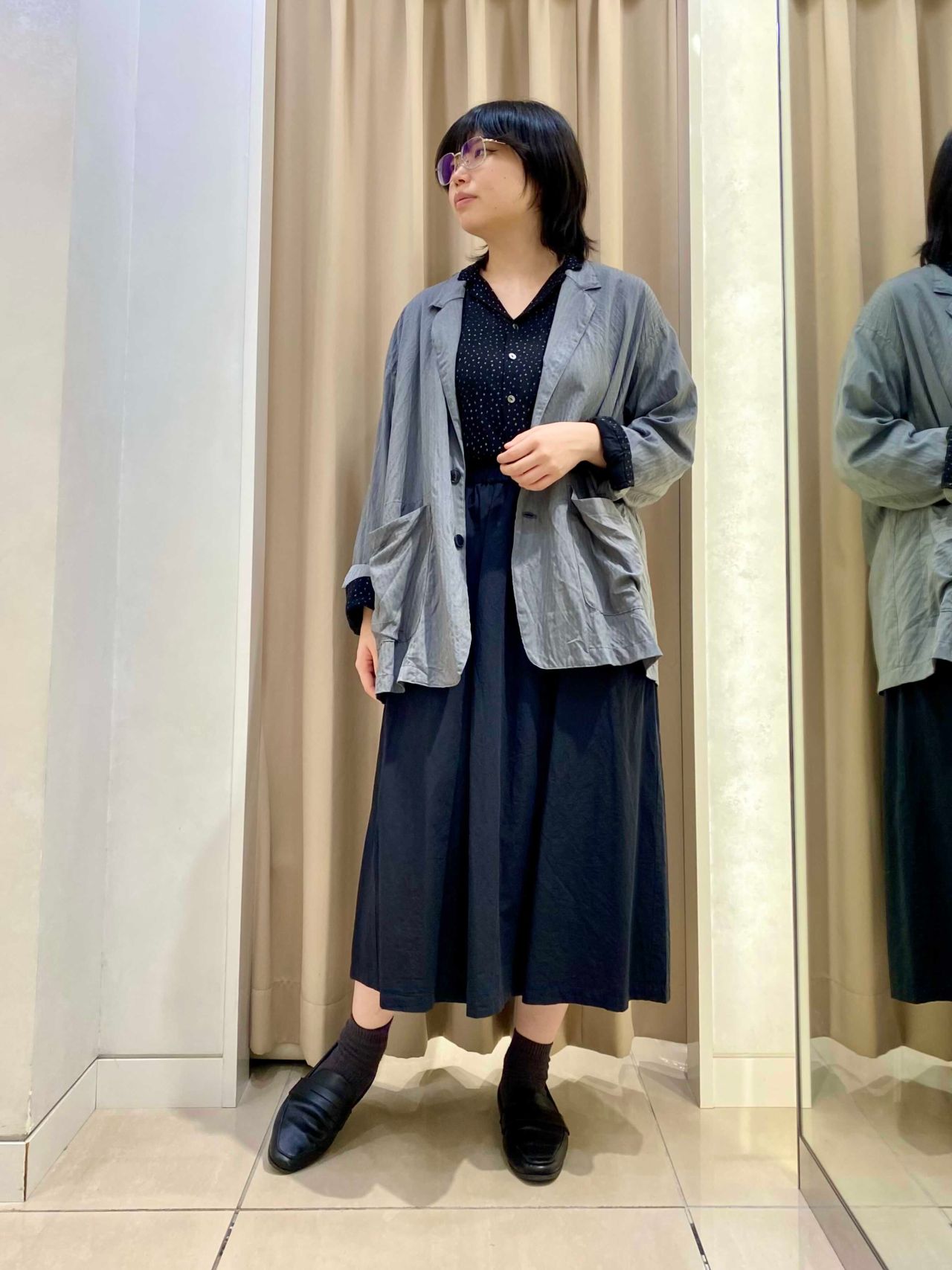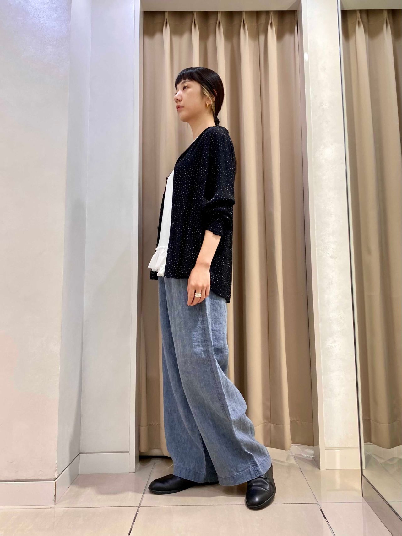 本日はレーヨンデシンプリントブラウスを使った横浜髙島屋店オススメのコーディネートをご紹介いたします。