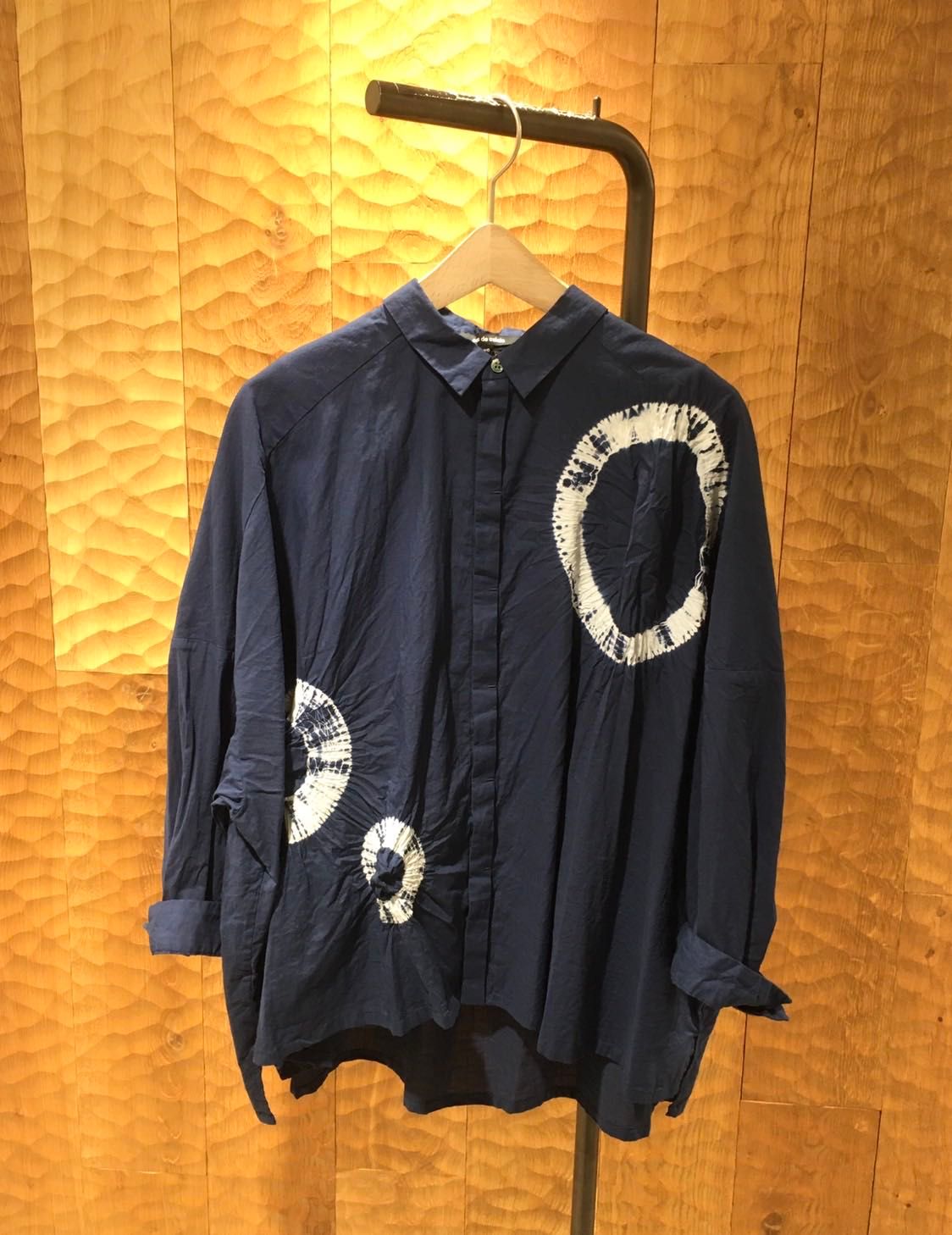 こちらは、巻き上げ絞りの大胆な柄が施されたブラウス。