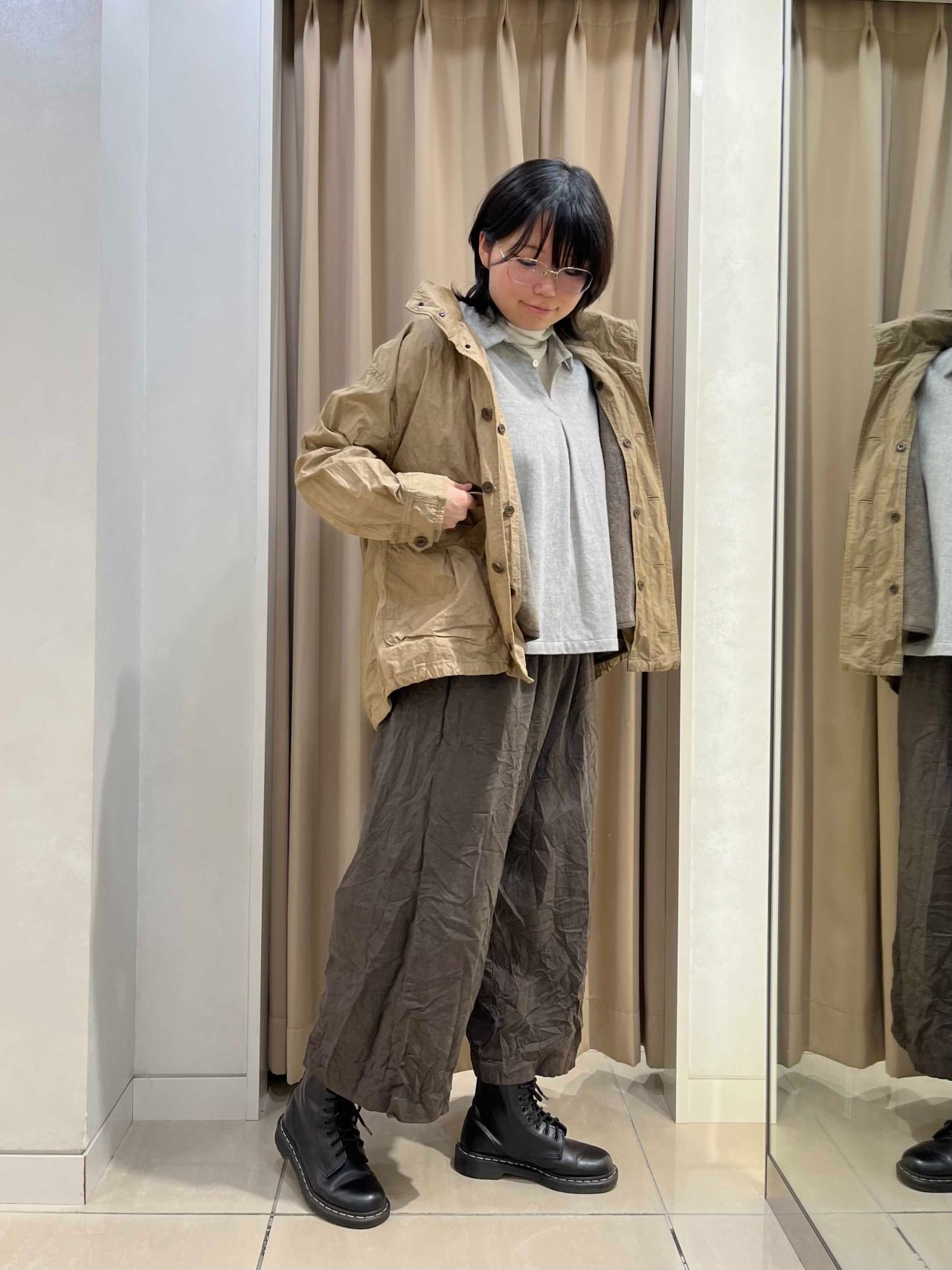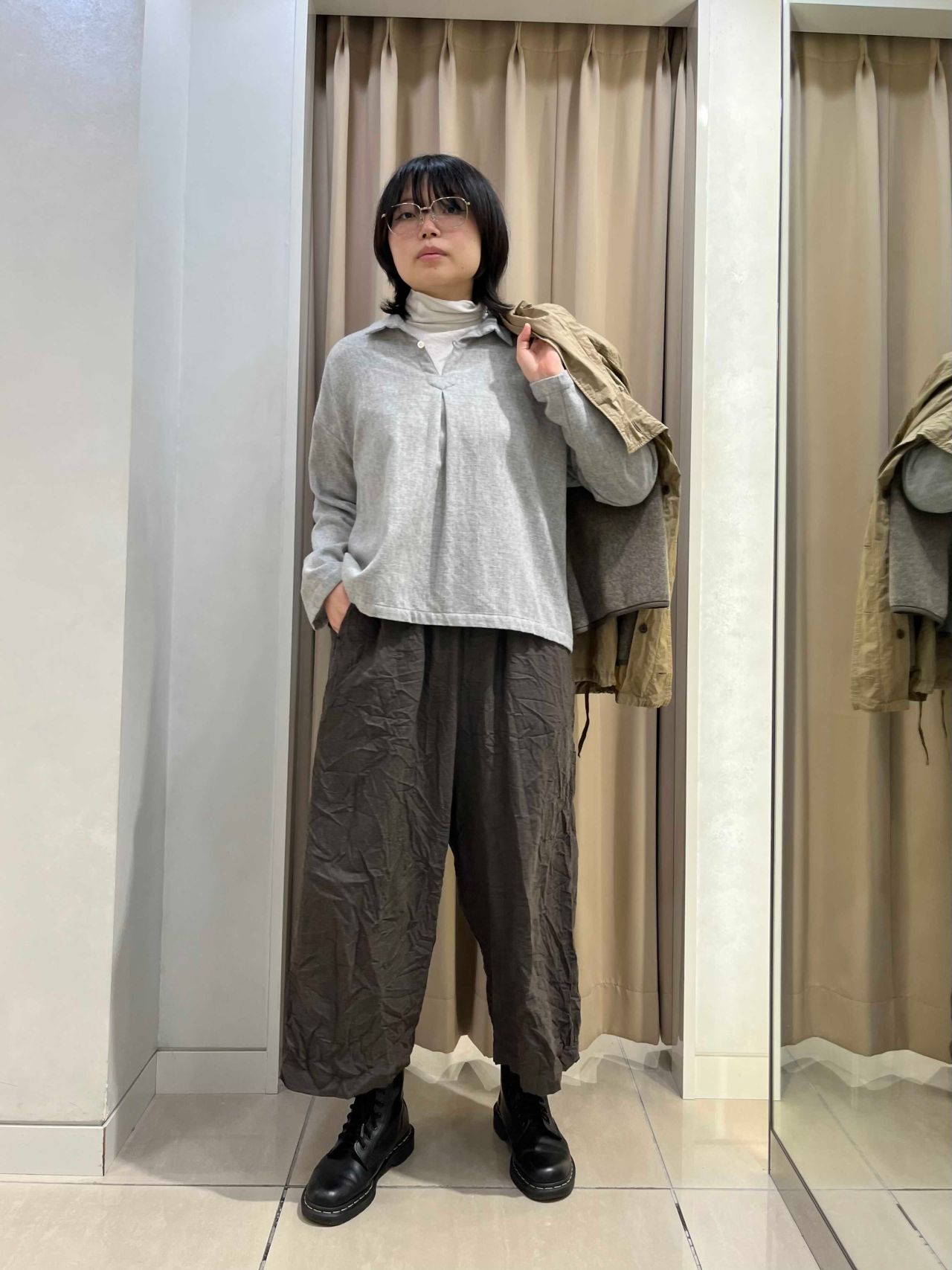 col. アイボリー/トップグレー/ブラック/ブラウン(着用)