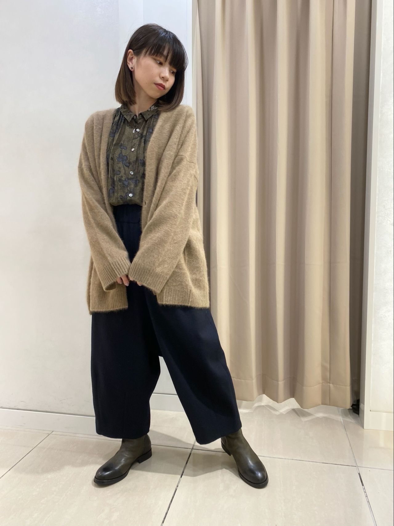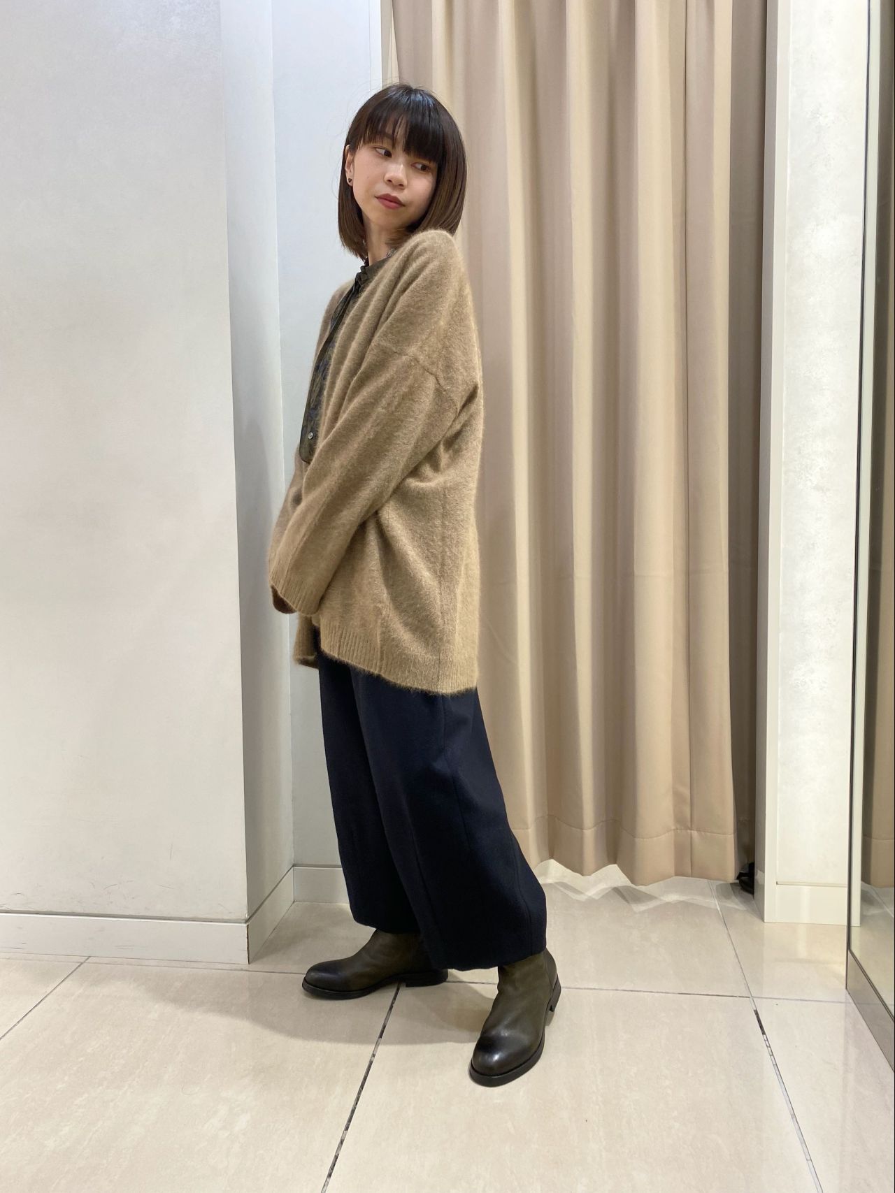着用してるカーディガンは、たっぷり身幅を取った、ラクーン100%のお素材。